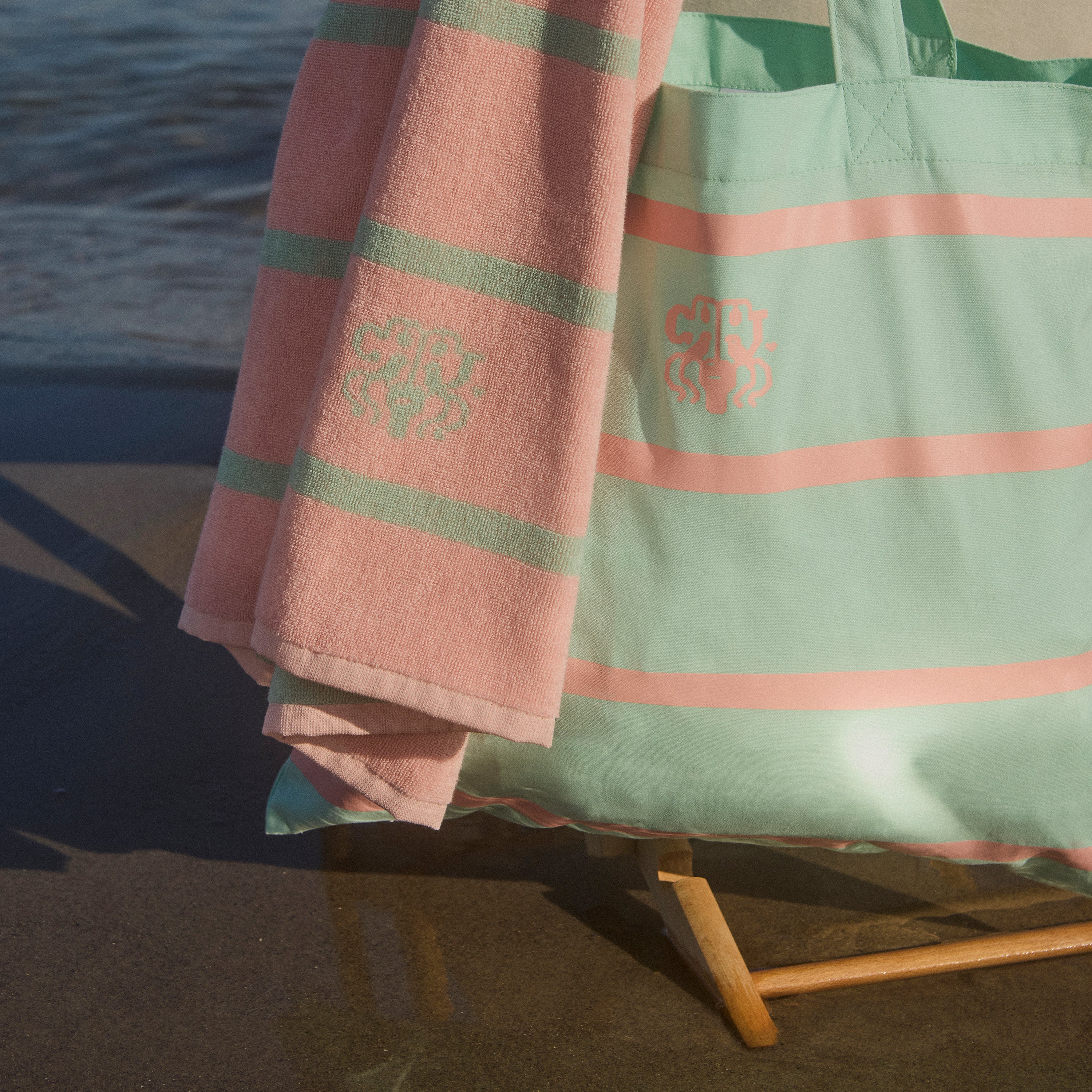 Canvas bag in fresh, summer shades. This spacious bag is woven in 100% cotton and is perfect for a trip to the beach. The Summer Rose shade is green with bright, rose-red stripes.
