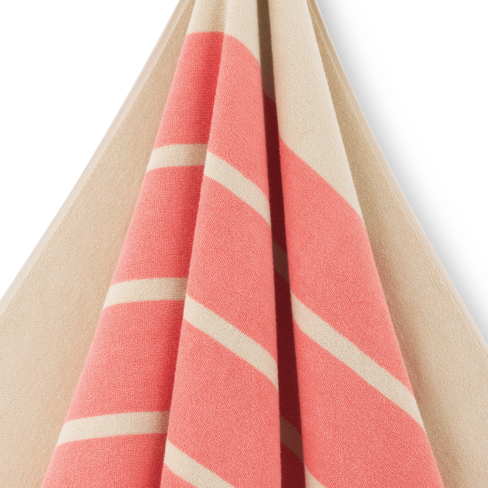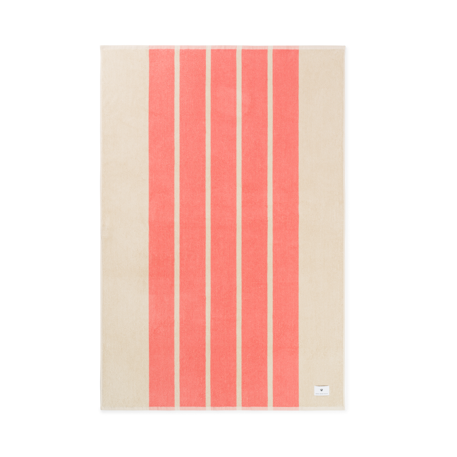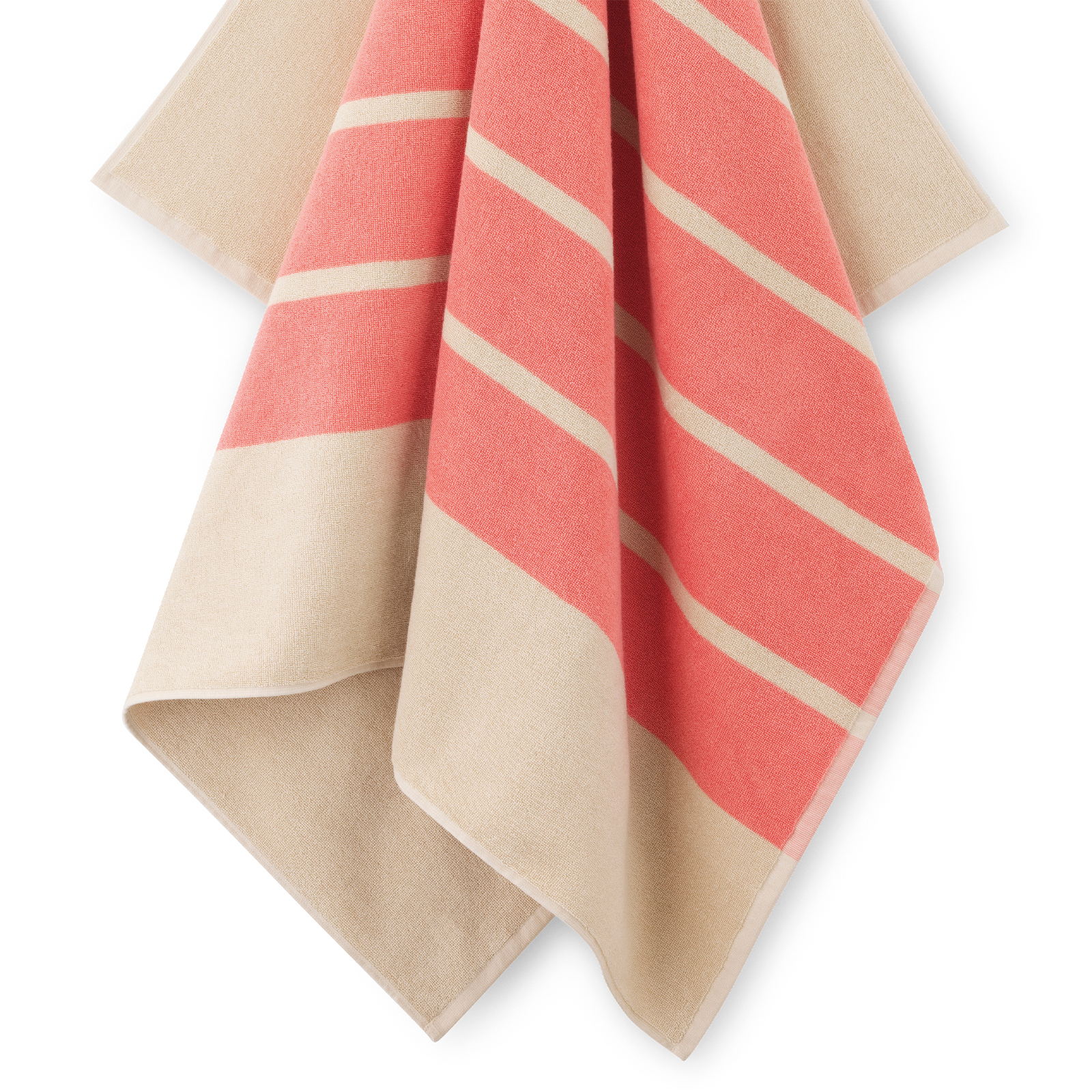 Classic bath sheet in soft terry with pink stripes on a sand‑coloured base. The bath sheet is woven from 100% double‑twisted and combed cotton, giving it a soft and lustrous surface.