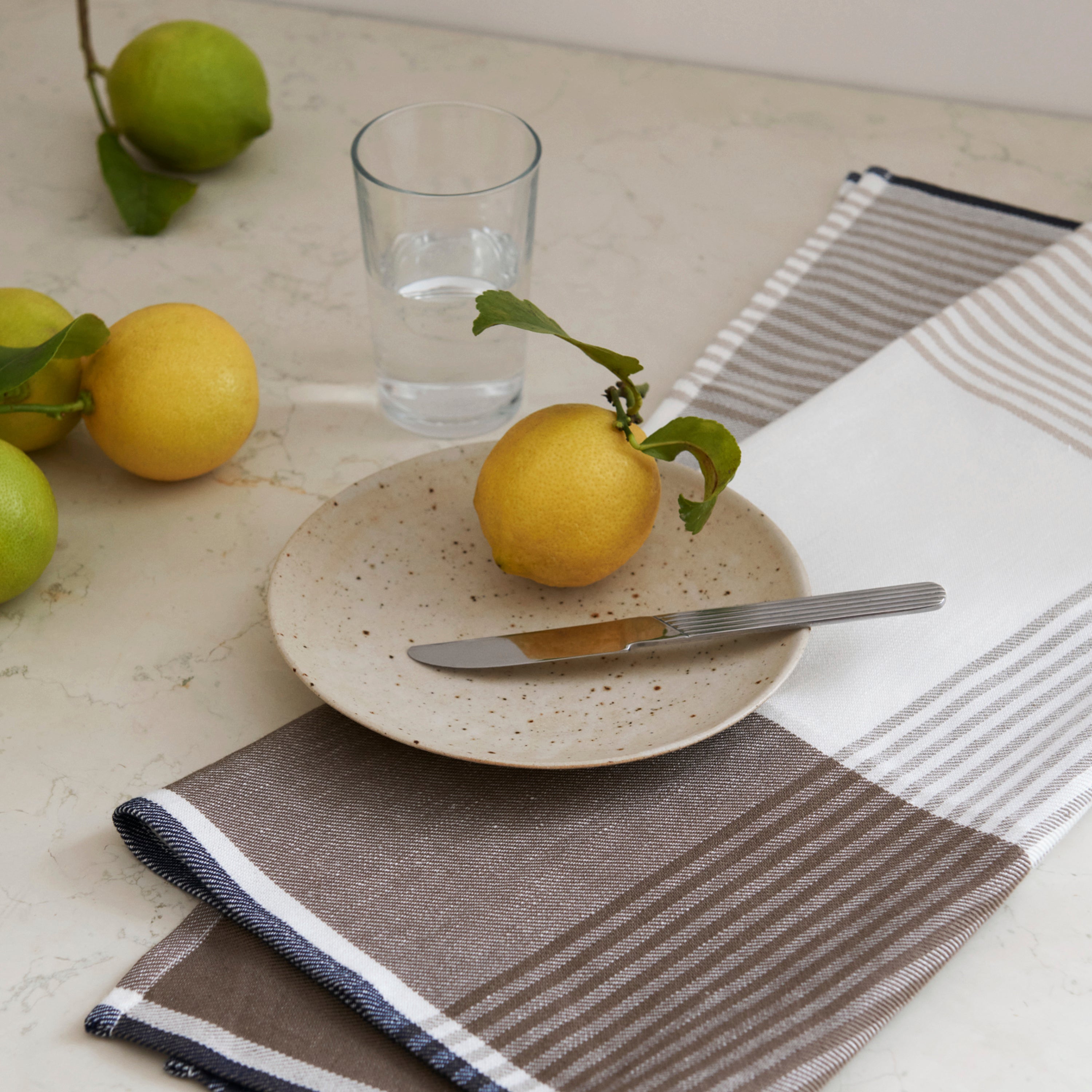 The colour Walnut lends the tea towel a sophisticated and stylish look, where shades of brown and white are framed by a beautiful dark blue line. Equally at home in a country kitchen or in a modern kitchen.