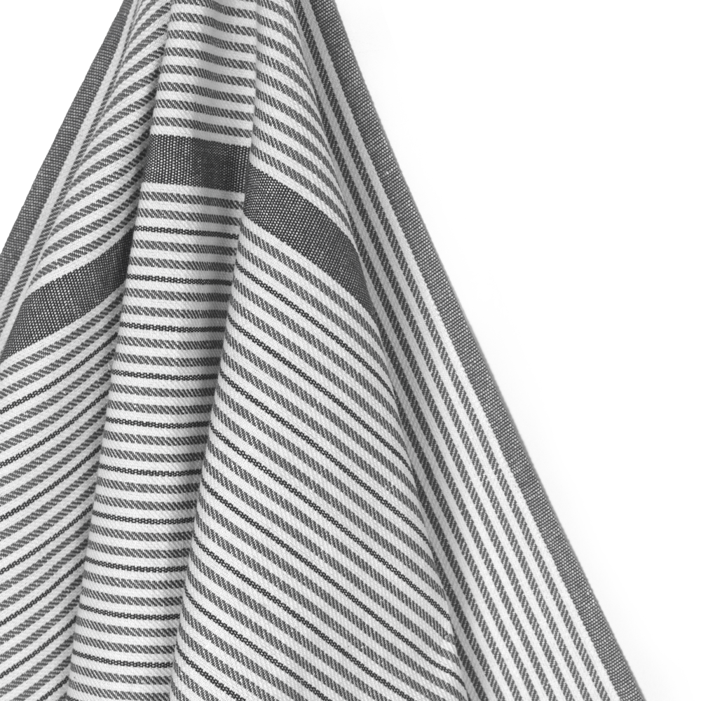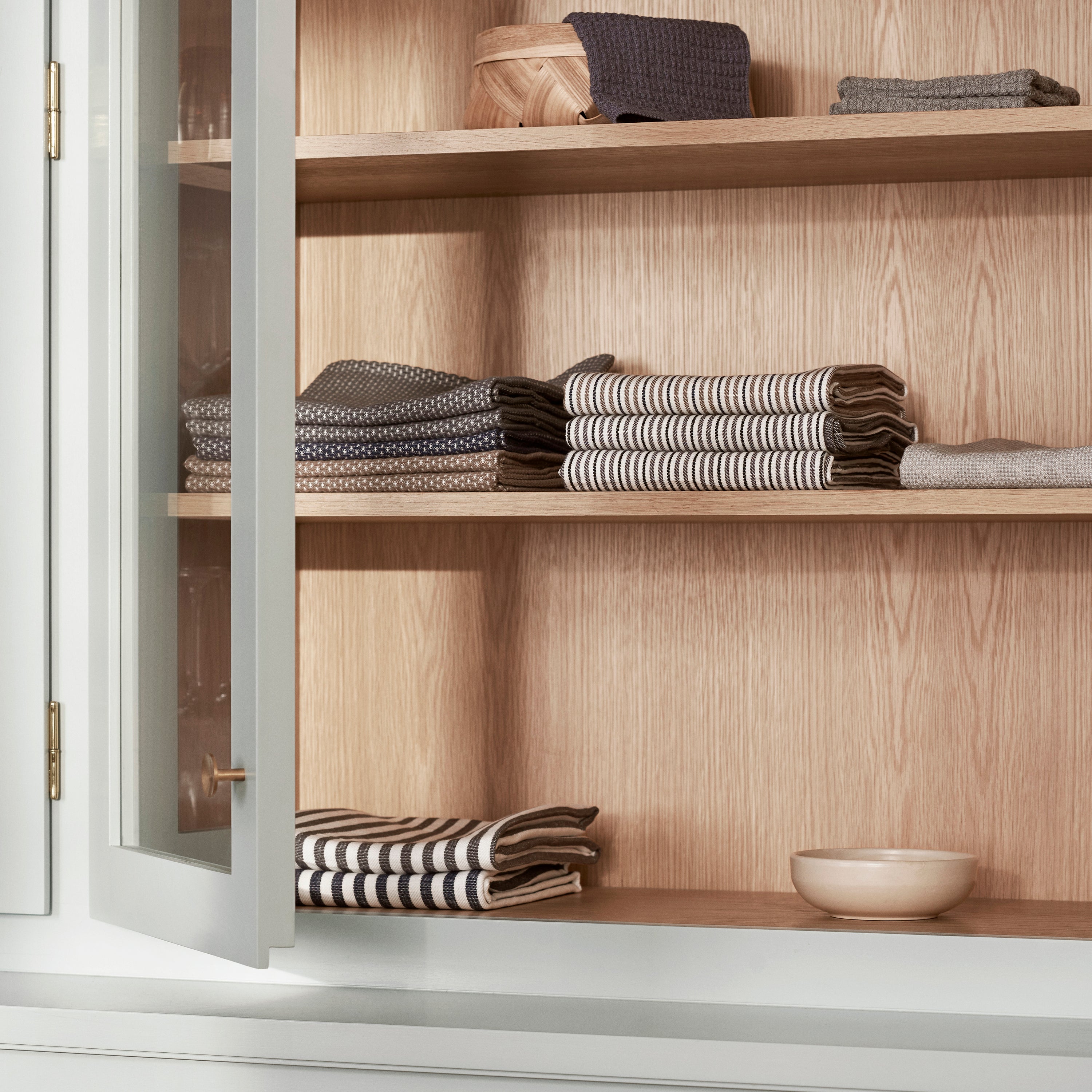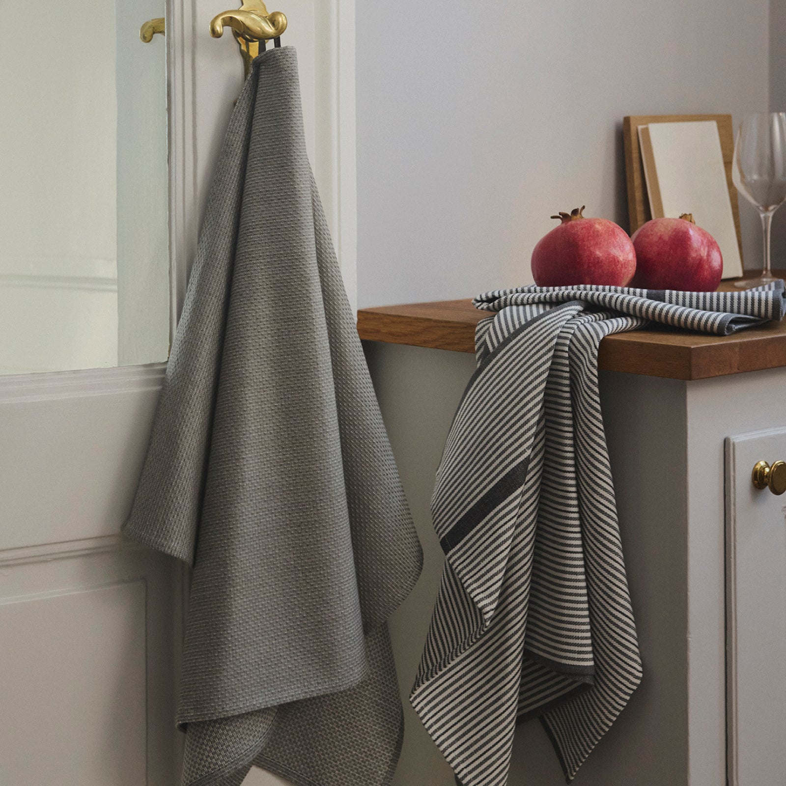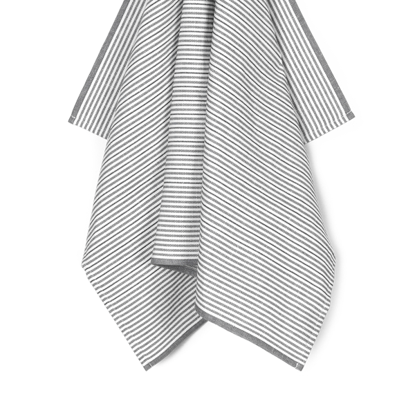 Comet is a minimalistic striped tea towel woven from a blend of cotton and linen, making it ideal for drying. The Dark Grey colour combination is timeless and suits most kitchens.