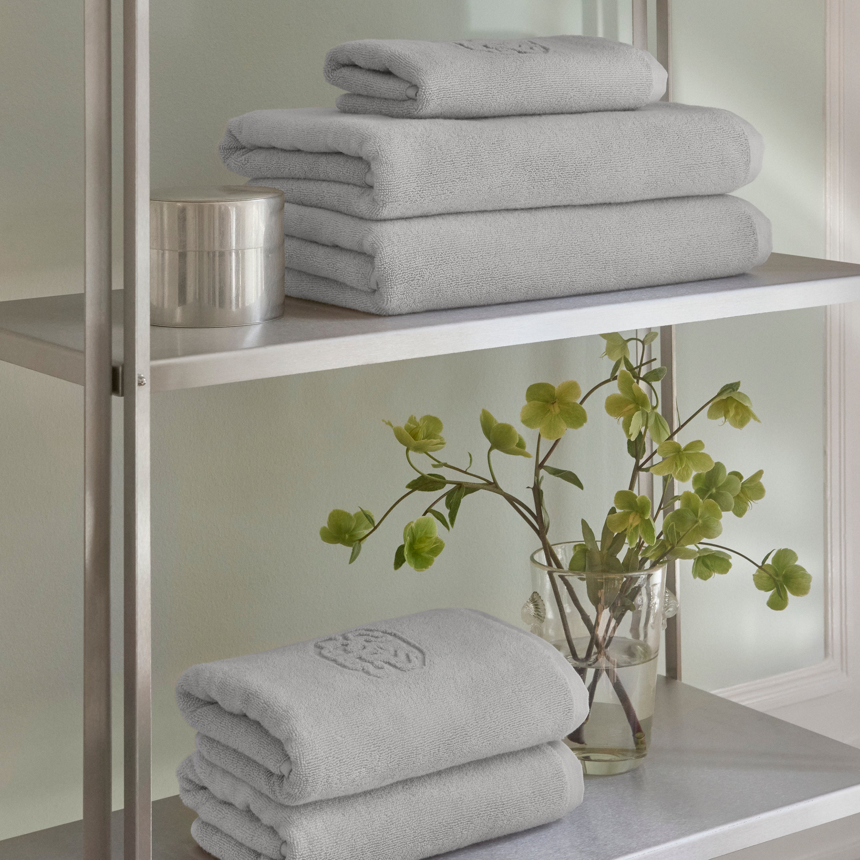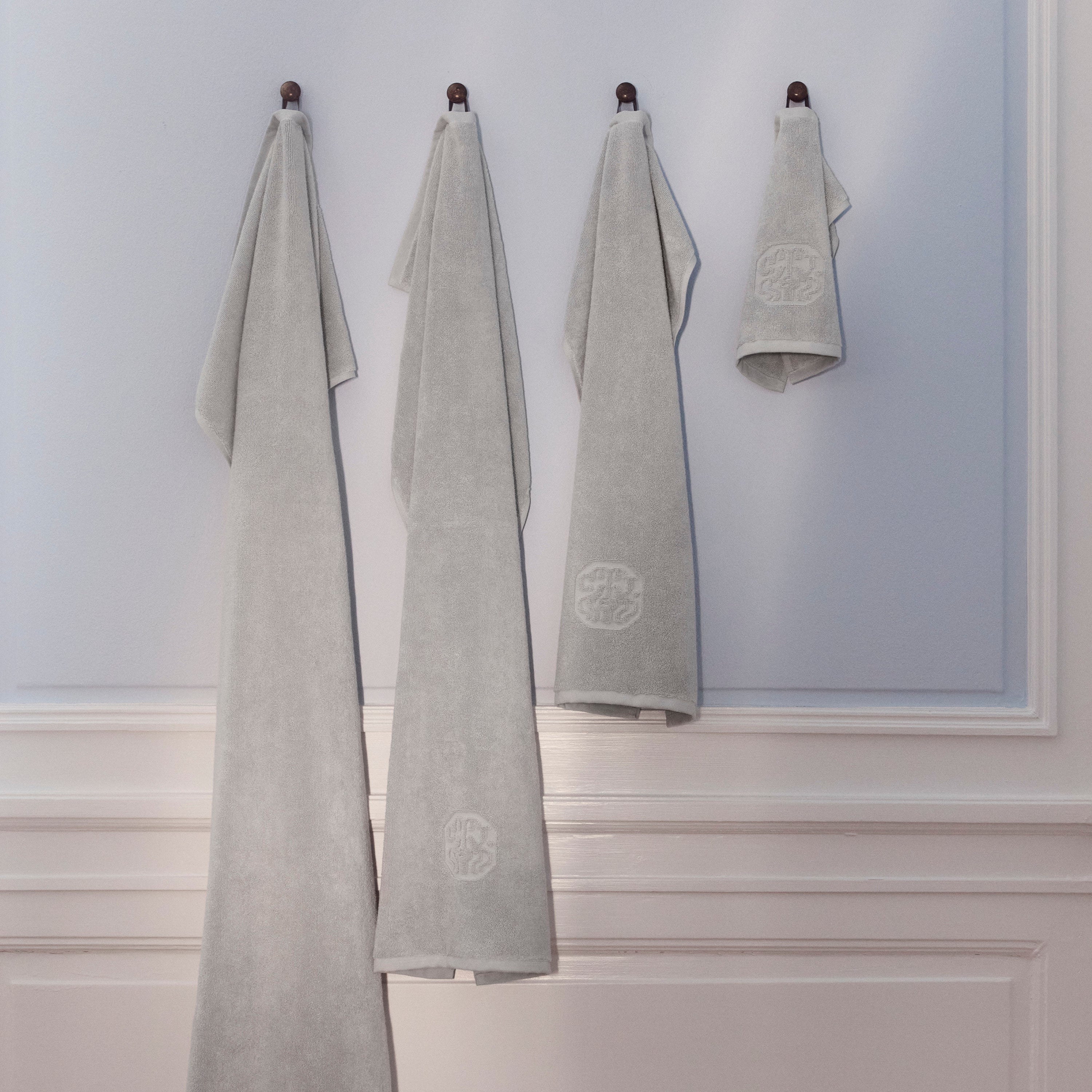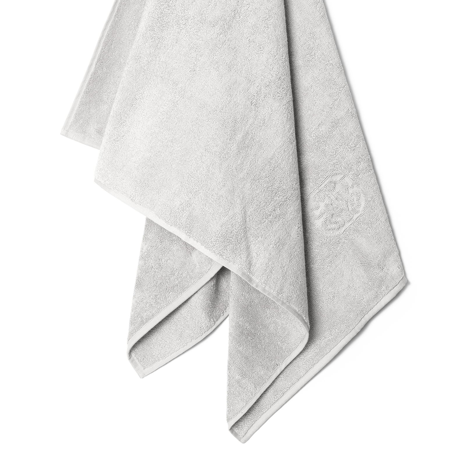 The Damask Terry bath towel has a simple look with the iconic Georg Jensen Damask logo woven in as an elegant detail. Platinium Grey is a light and calm shade of grey.