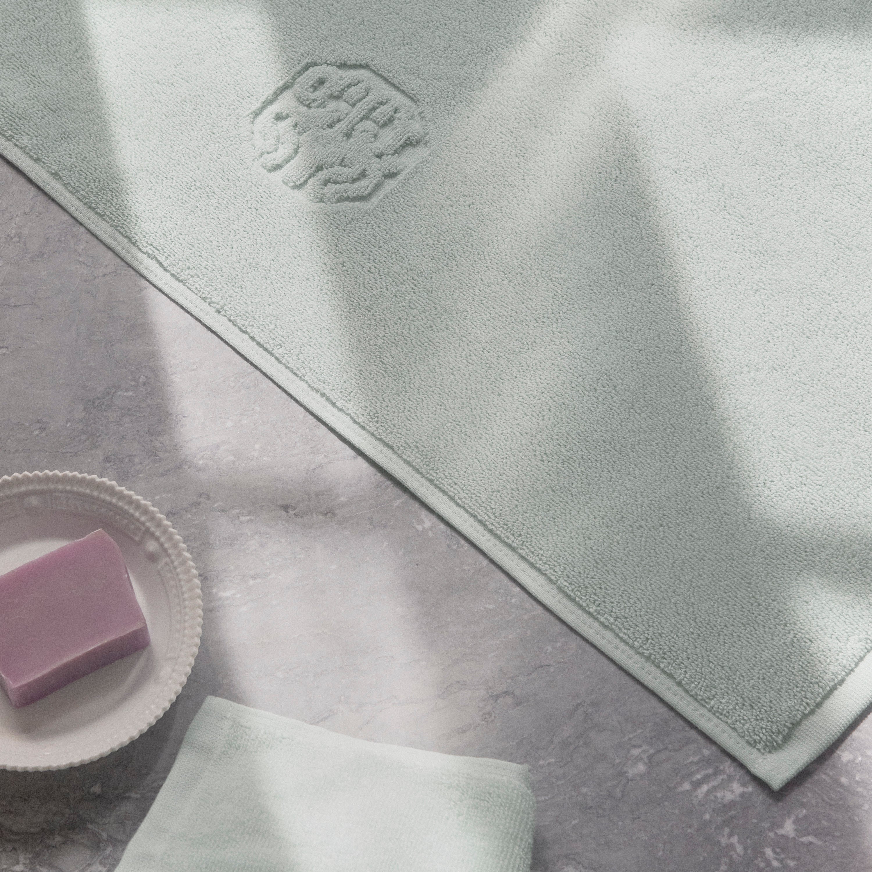 The Damask Terry bath mat features a simple design with the iconic Georg Jensen Damask logo woven in as an elegant detail. The clear green-blue shade, Glass Green, is inspired by the color of raw glass.