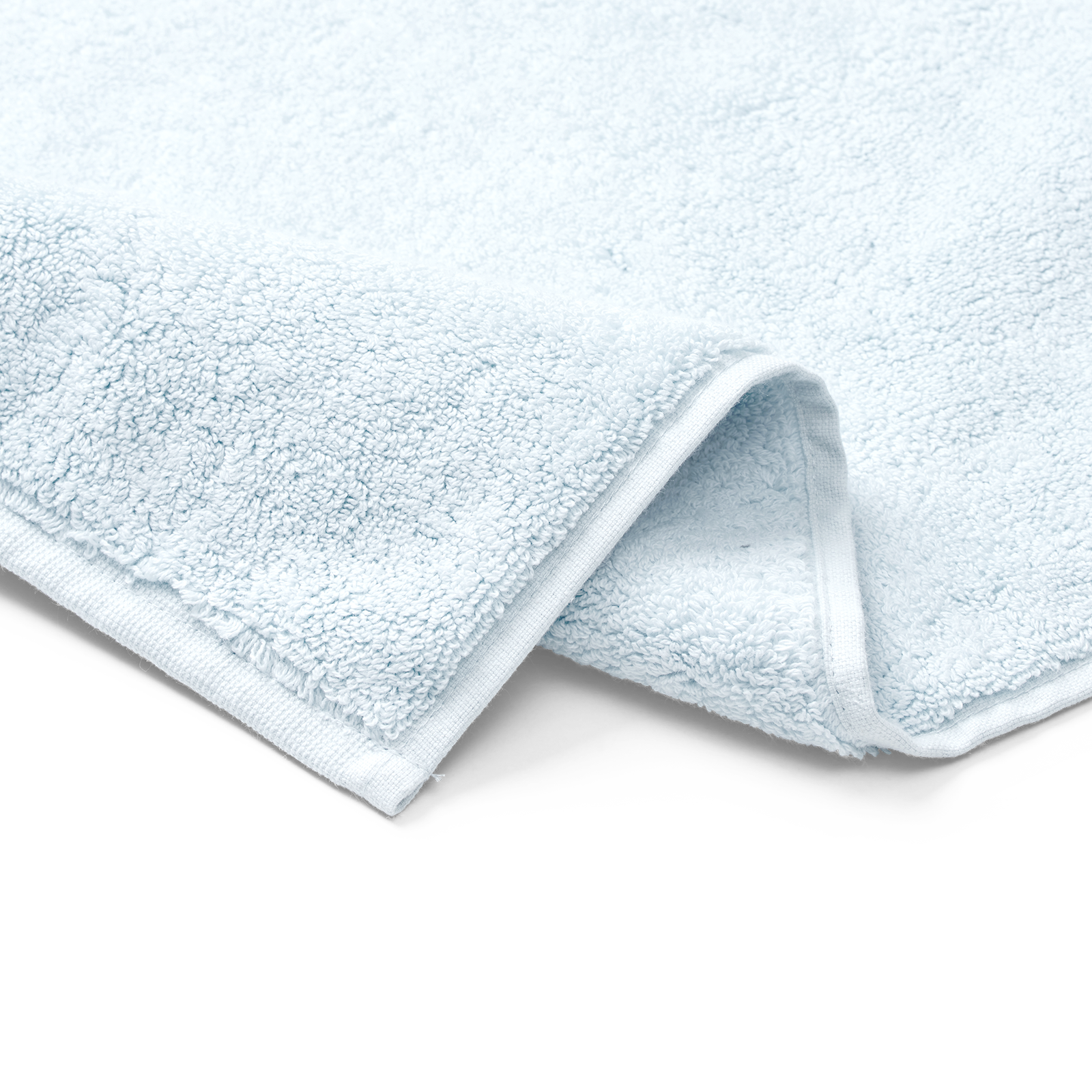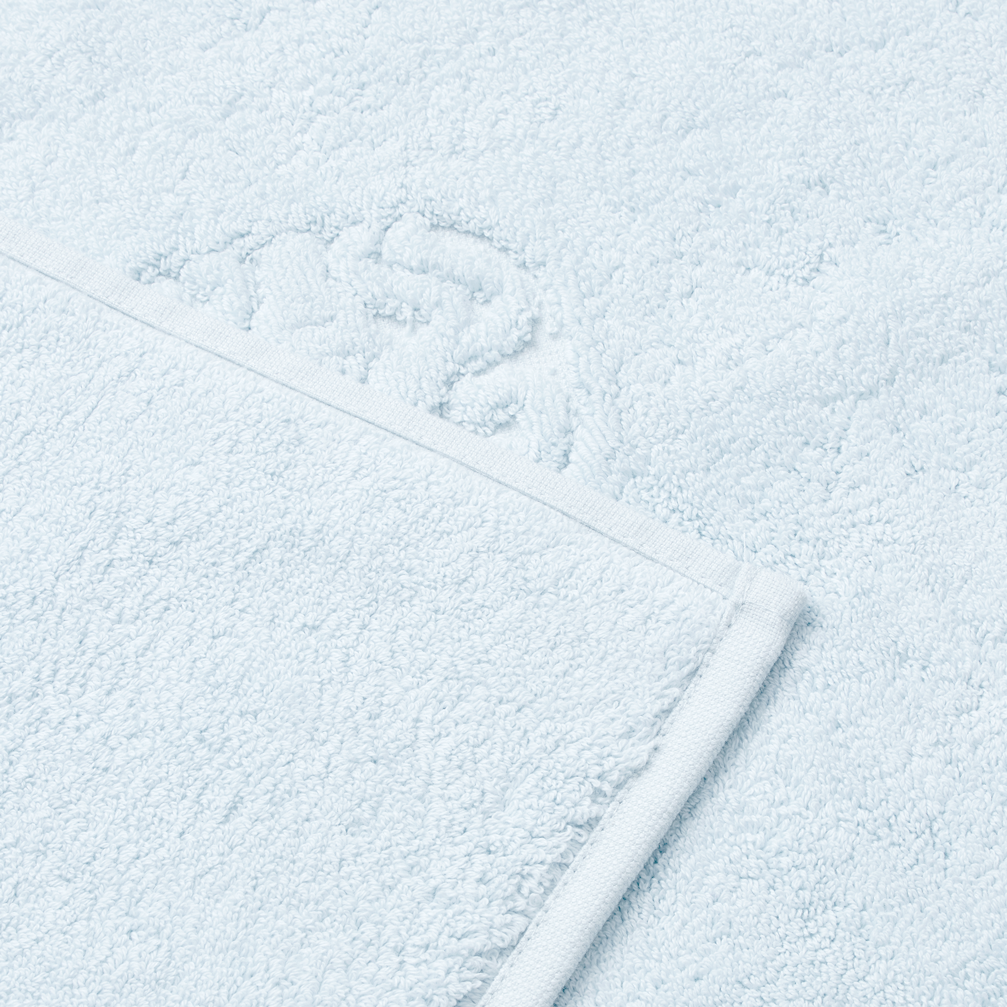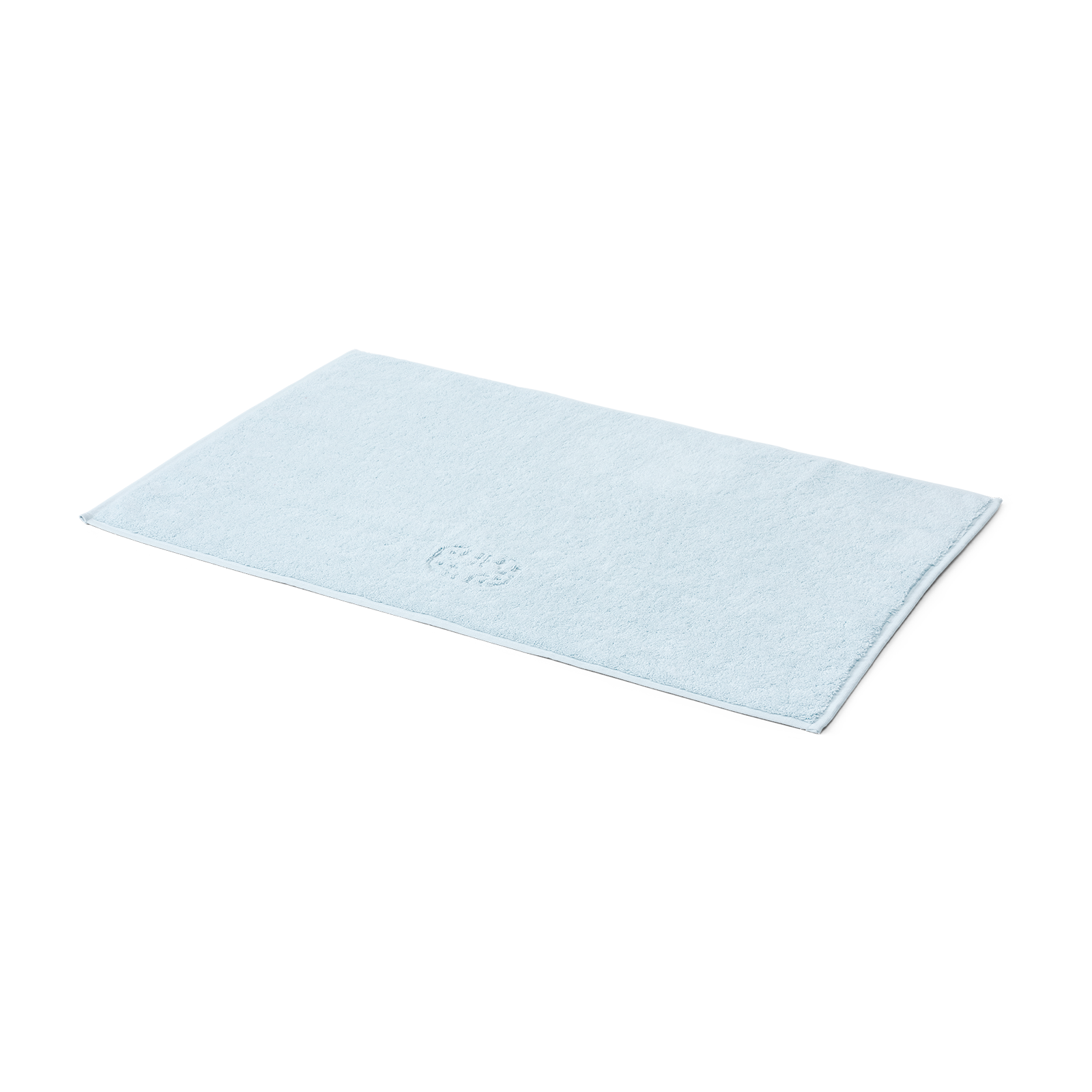 The Damask Terry bath mat features a simple design with the iconic Georg Jensen Damask logo woven in as an elegant detail. Minimal Blue is a very light shade of light blue with a hint of aqua.