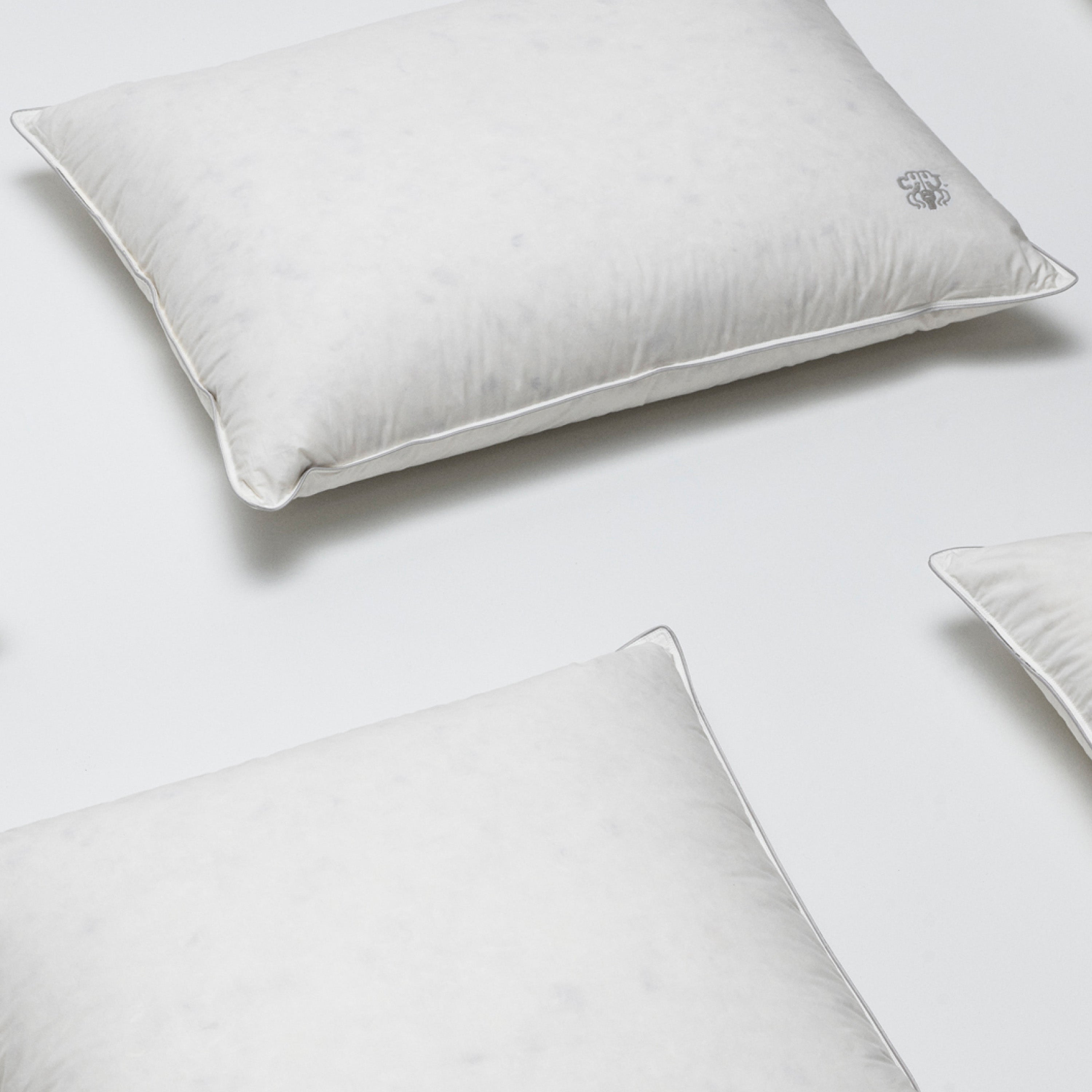 The duck down pillow features Georg Jensen Damask iconic logo as a discreet embroidery – a symbol of quality and care.