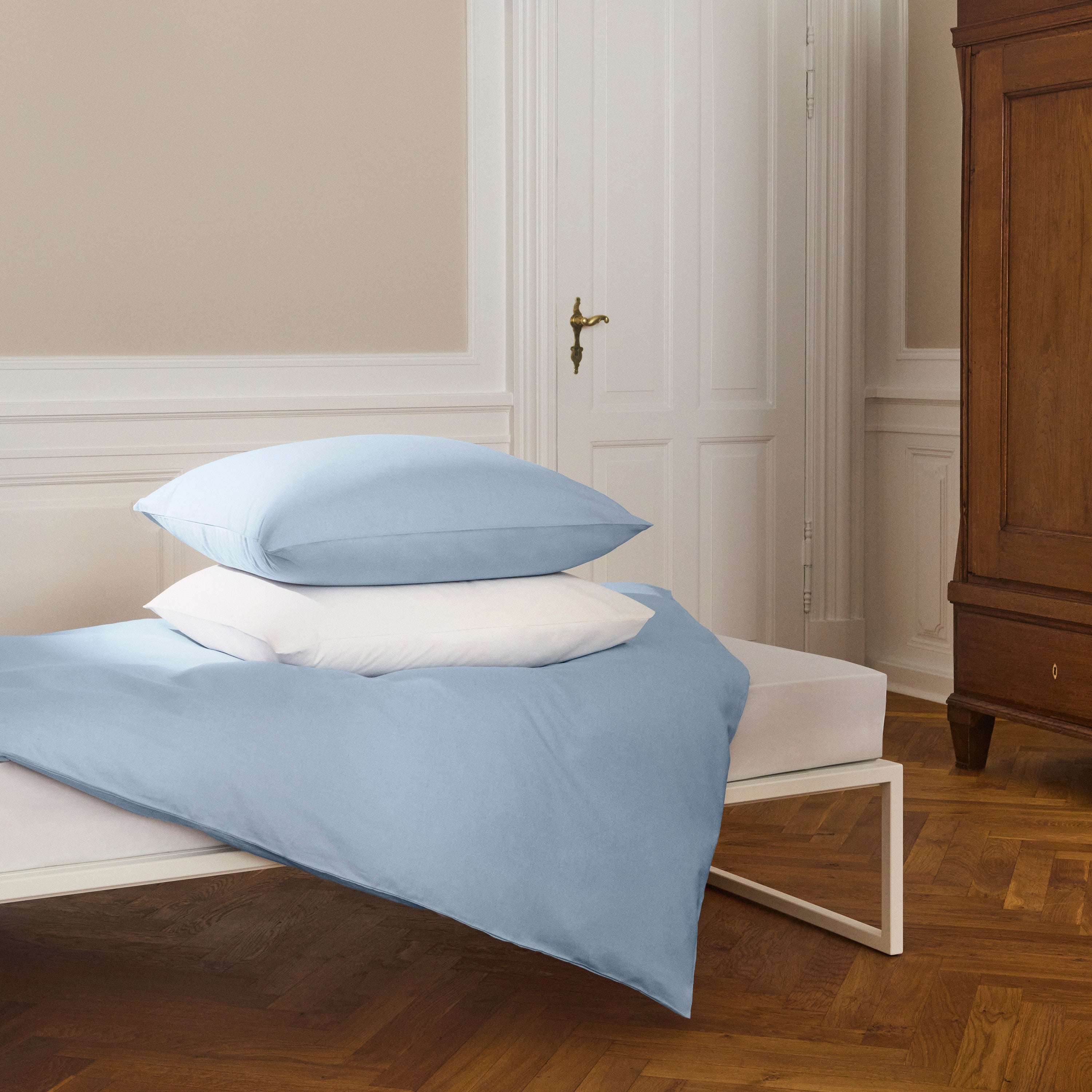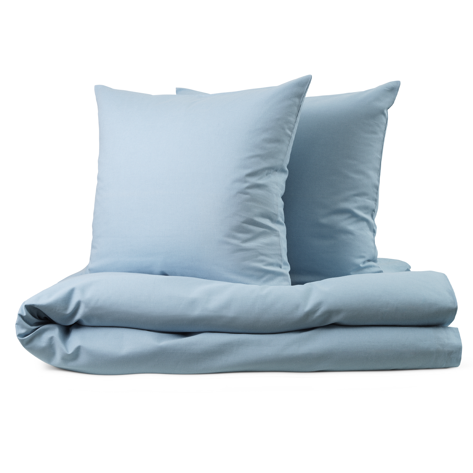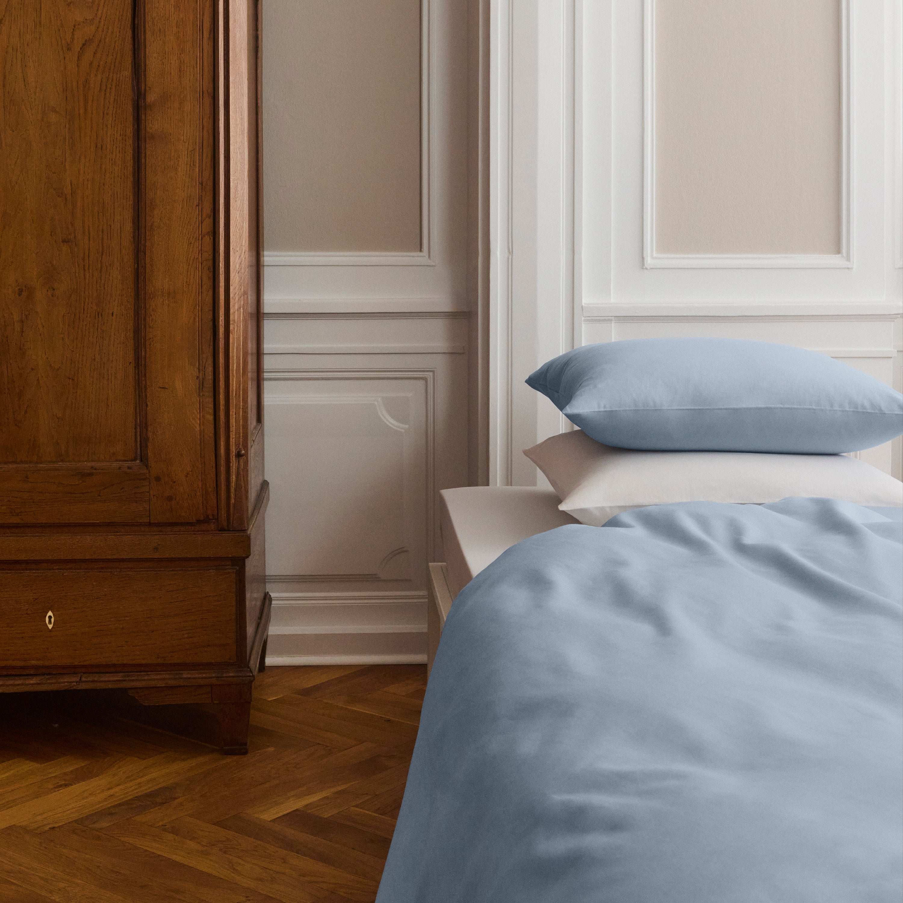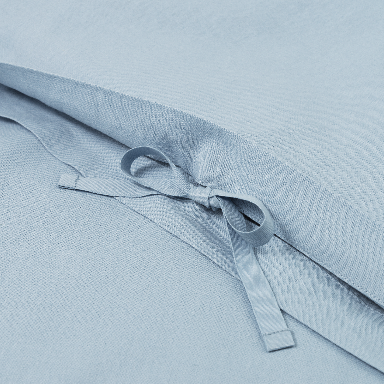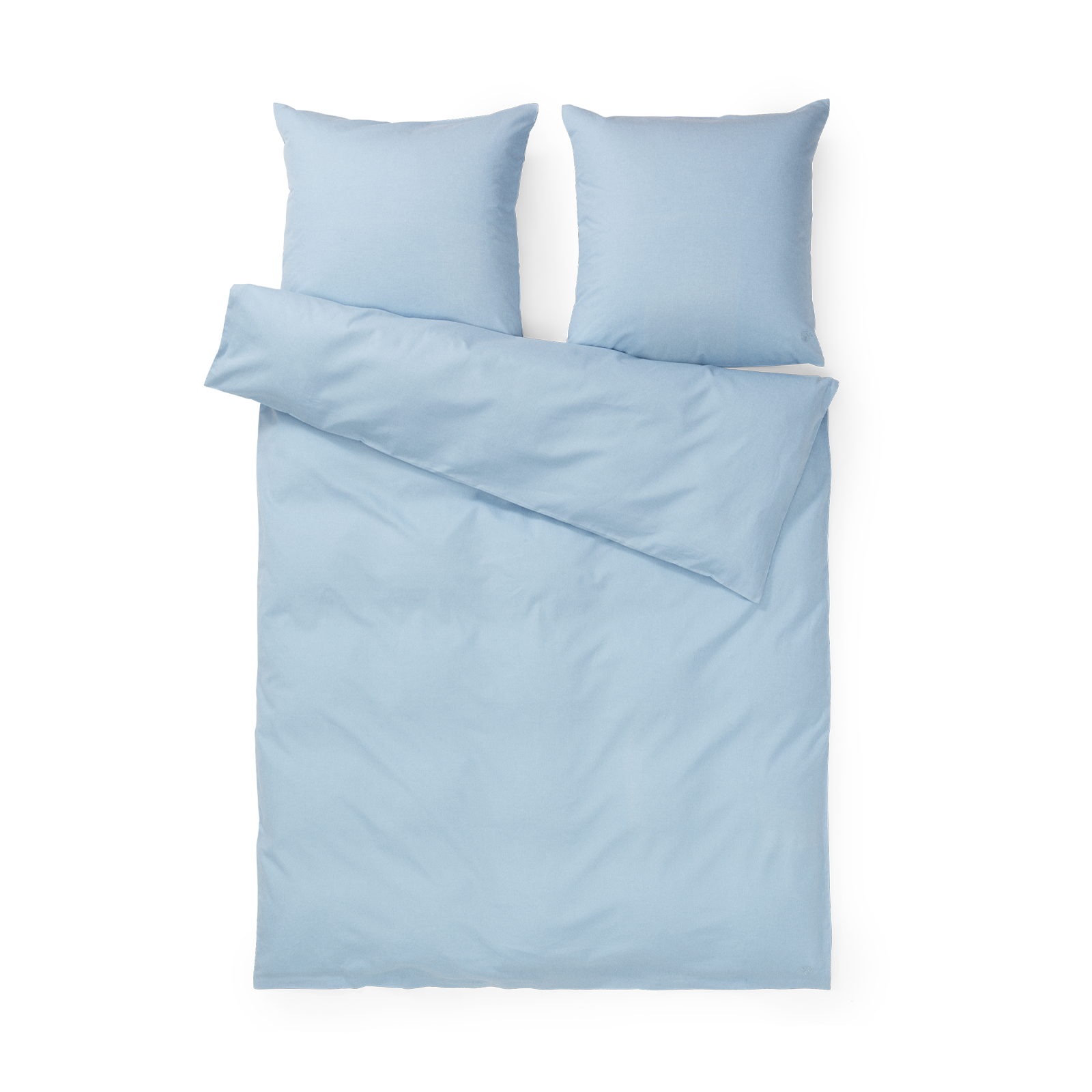 The Even bedding is woven from linen and cotton to combine the unique qualities of both materials. The natural texture of linen paired with the softness and shape retention of cotton. Together, they create a beautiful, matte and soft surface – as well as breathable and hard-wearing bedding. The colour Blue Haze is a light, dusty shade of blue.