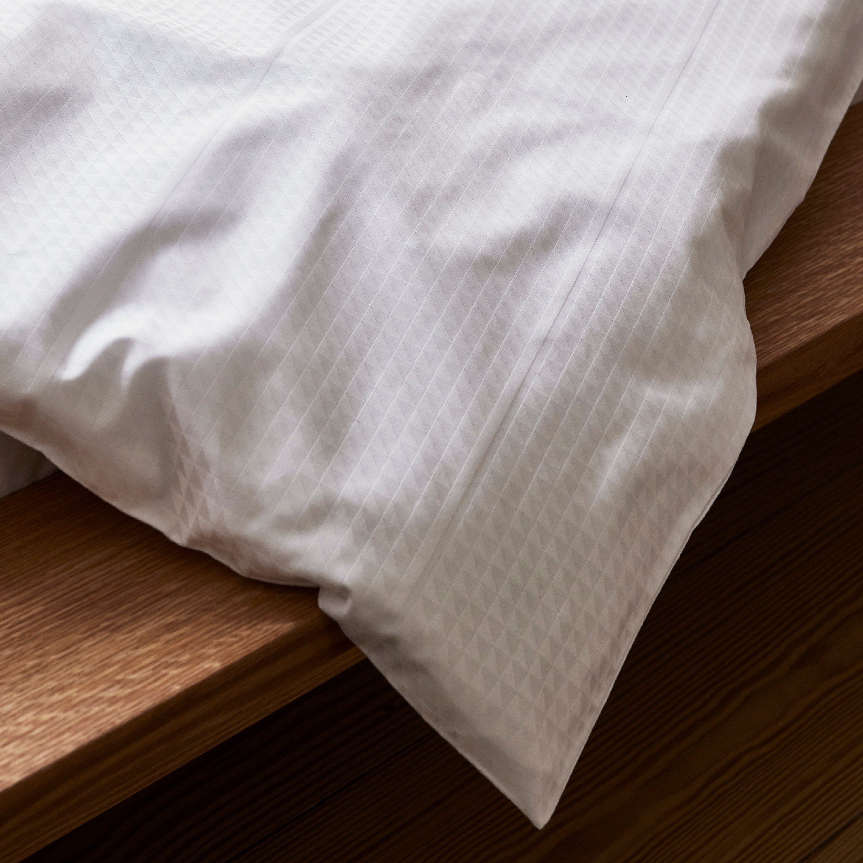Georg Jensen Damask’s Facet bedding has a precise design and is damask-woven in 100% combed cotton, providing a soft and smooth surface. With the Facet design, textile artist Jette Nevers uses the classic damask weaving technique to create an elegant play of light and shadow.