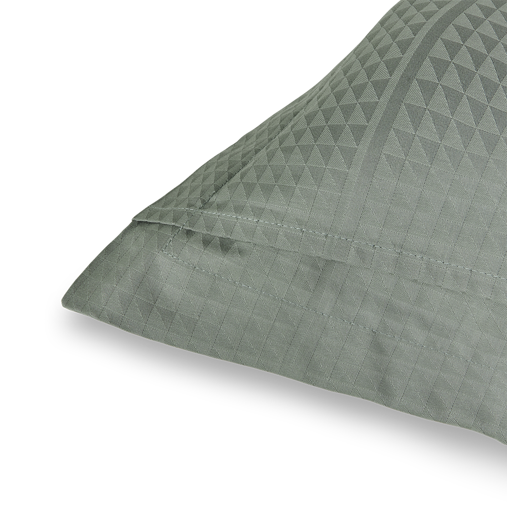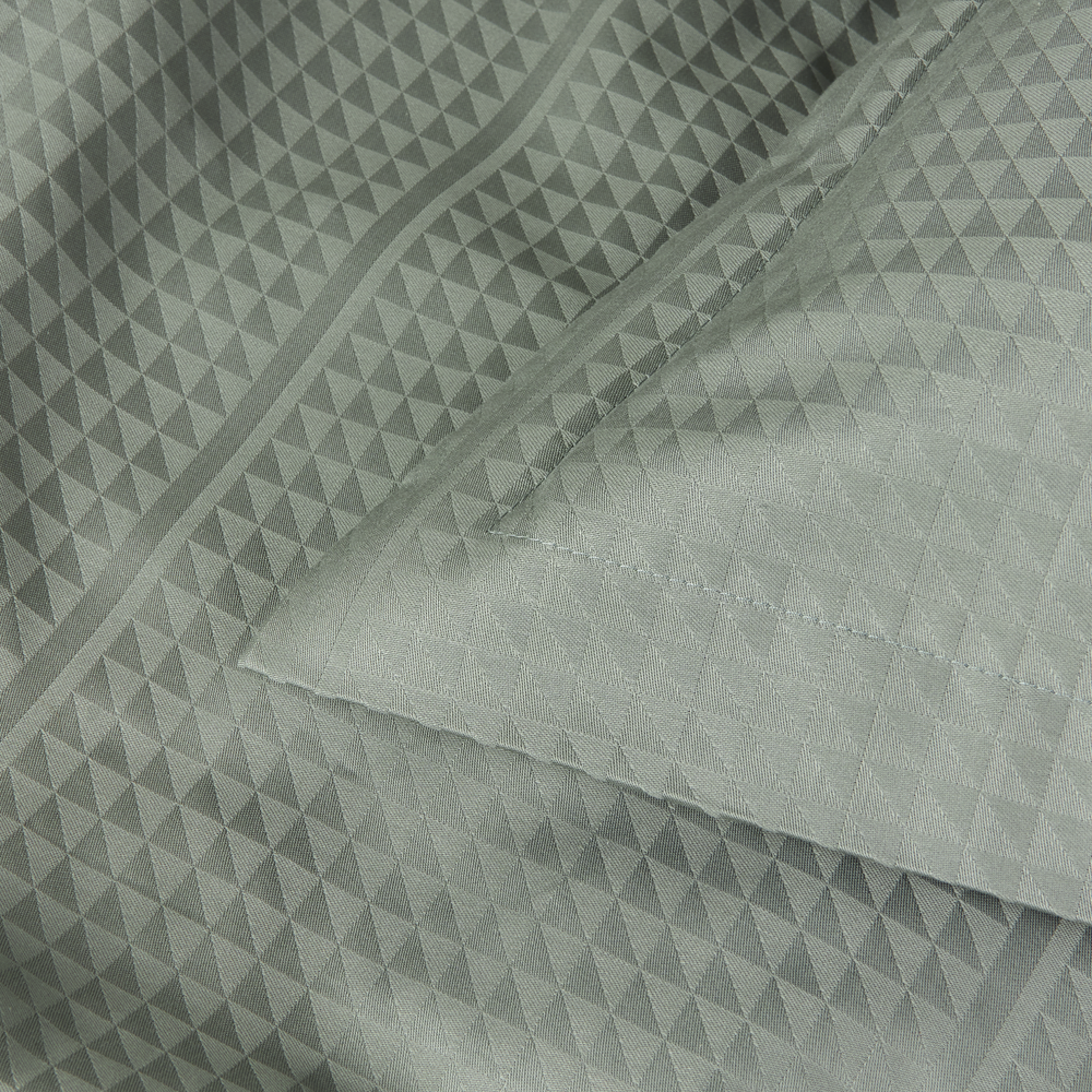 Georg Jensen Damask’s Facet bedding has a precise design and is damask-woven in 100% combed cotton, providing a soft and smooth surface. With the Facet design, textile artist Jette Nevers uses the classic damask weaving technique to create an elegant play of light and shadow, beautifully highlighted in the dark green shade Mineral Green.