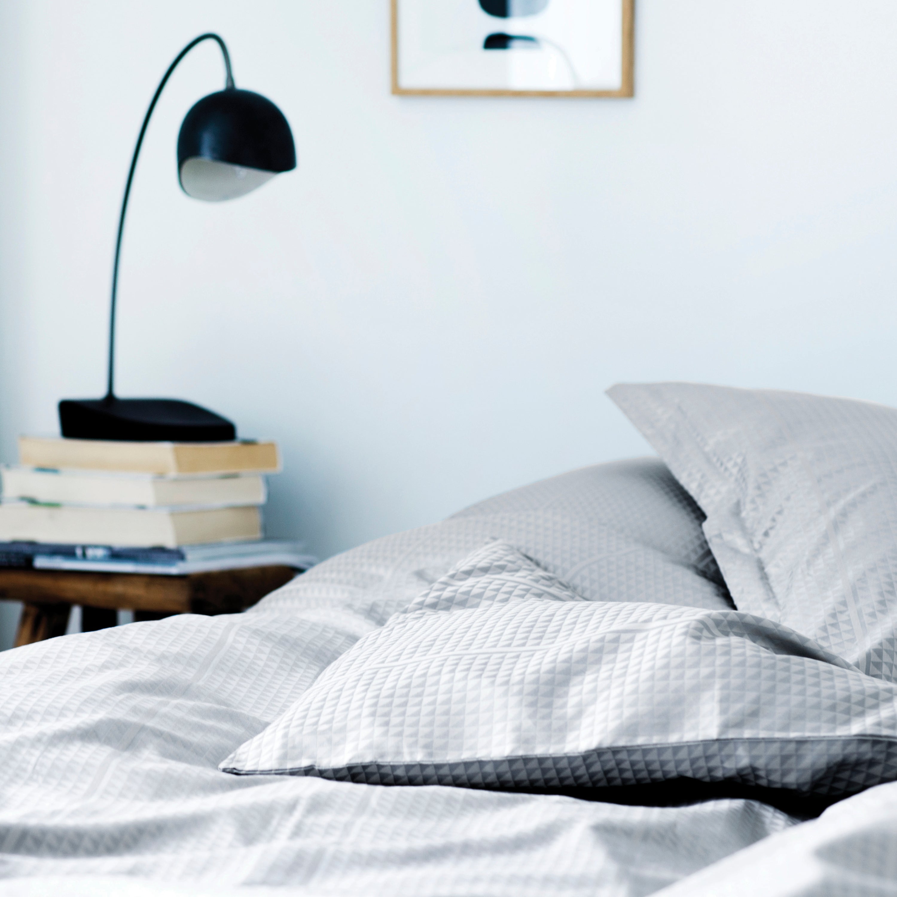 Georg Jensen Damask’s Facet bedding has a precise design and is damask-woven in 100% combed cotton, providing a soft and smooth surface. With the Facet design, textile artist Jette Nevers uses the classic damask weaving technique to create an elegant play of light and shadow, beautifully highlighted in the subtle grey tones of the shade Quartz.