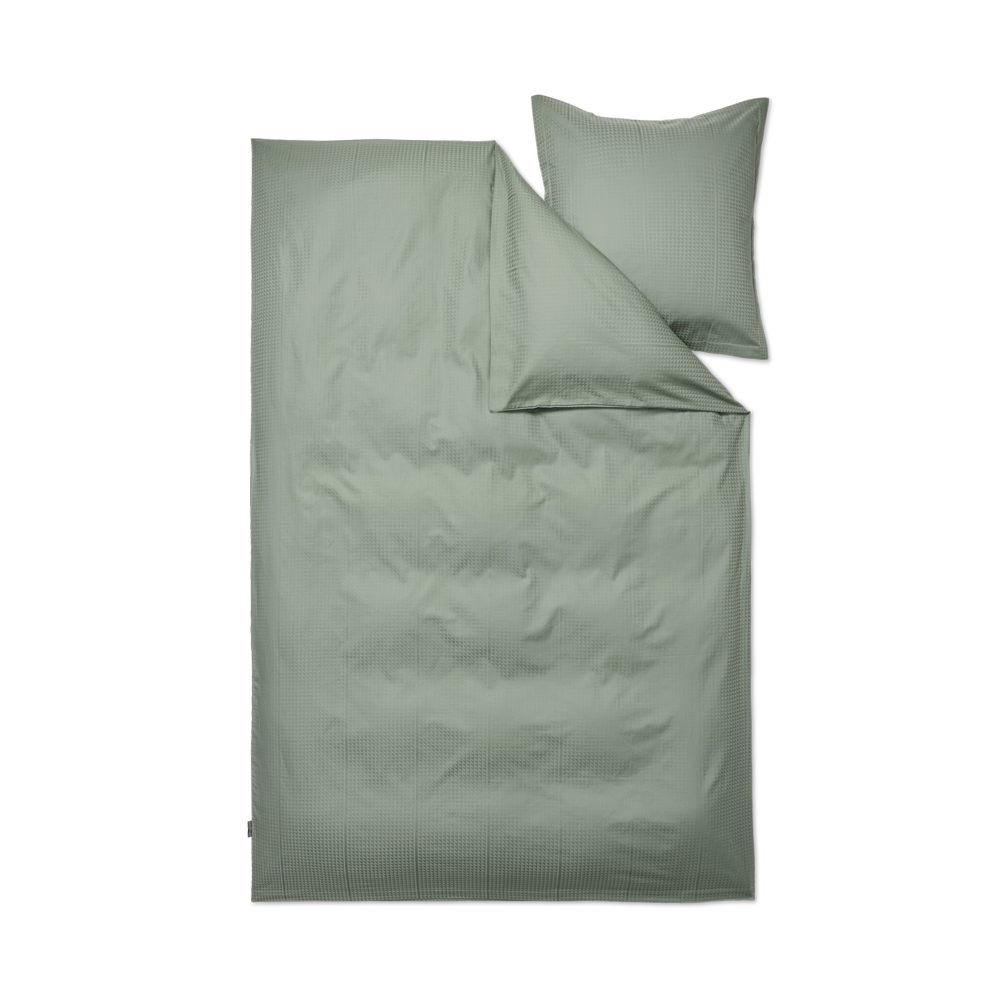 Georg Jensen Damask’s Facet bedding has a precise design and is damask-woven in 100% combed cotton, providing a soft and smooth surface. With the Facet design, textile artist Jette Nevers uses the classic damask weaving technique to create an elegant play of light and shadow, beautifully highlighted in the dark green shade Mineral Green.