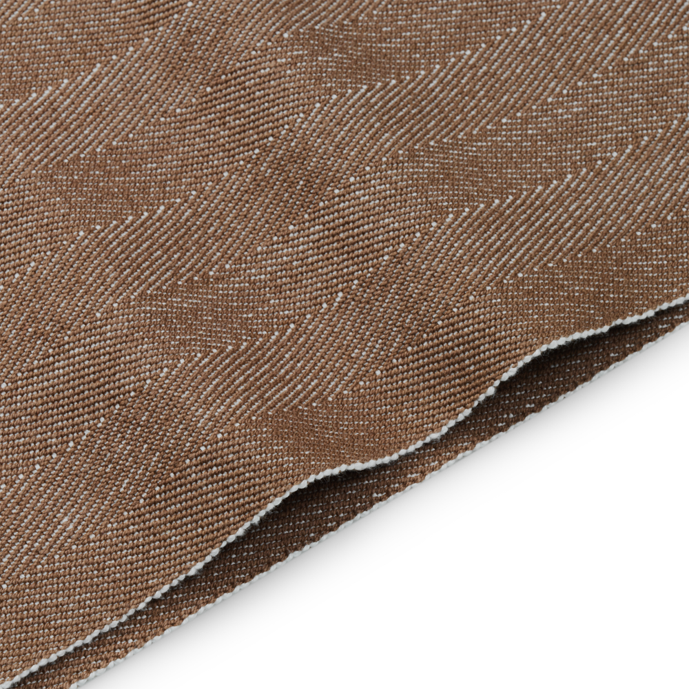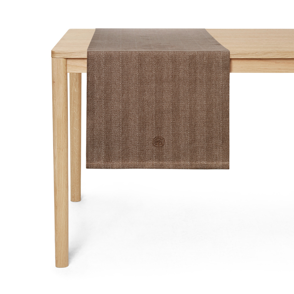 Herringbone is a herringbone-weave table runner in 100% heavyweight cotton. The table runner sits neatly on the table and has a small embroidered Georg Jensen Damask logo as a decorative detail. The Walnut shade is a nut brown classic across the Georg Jensen Damask collection.