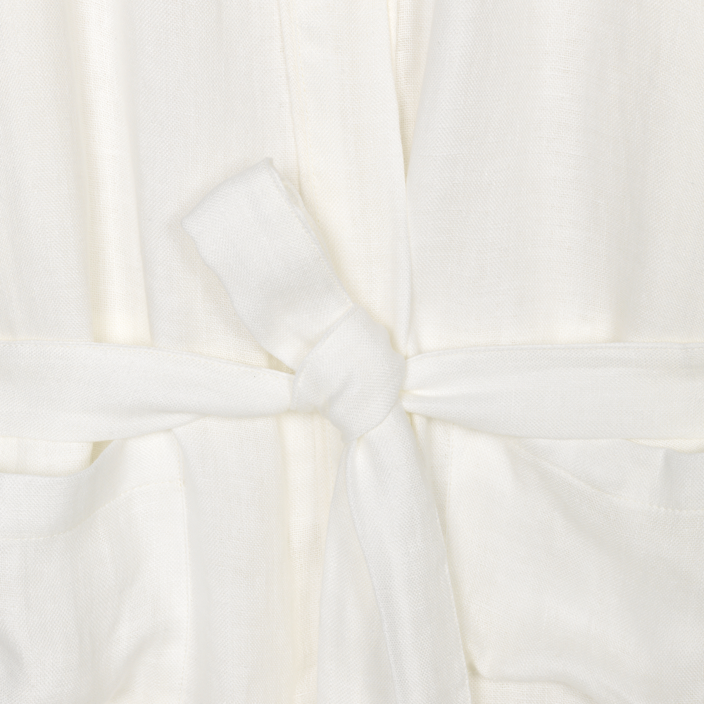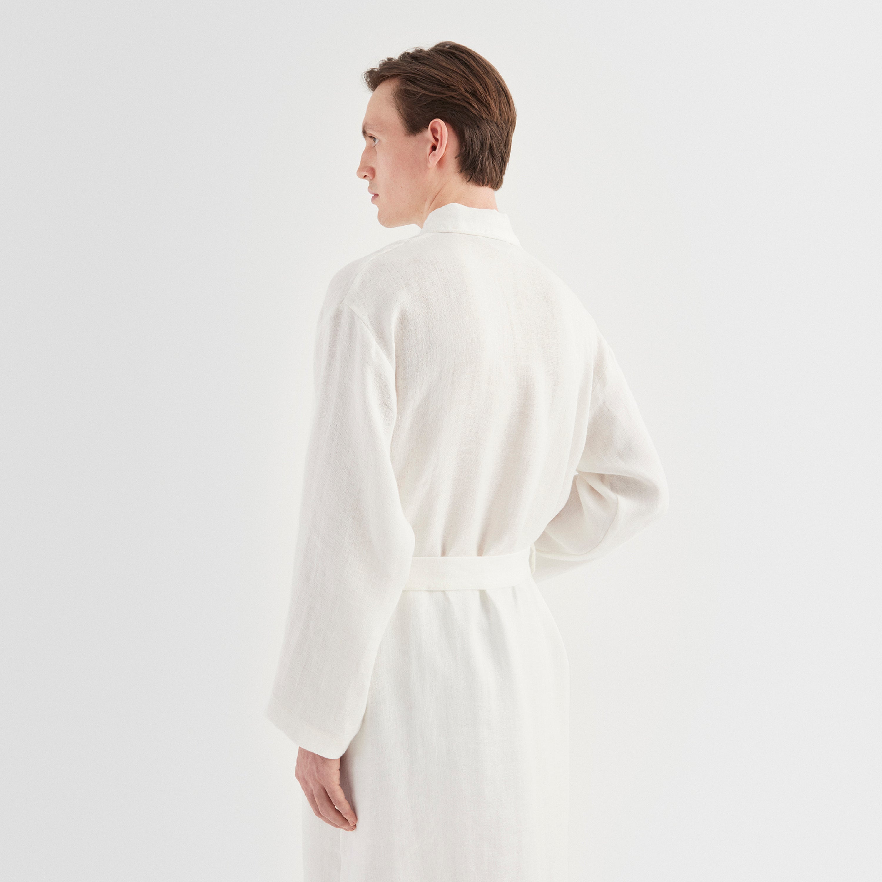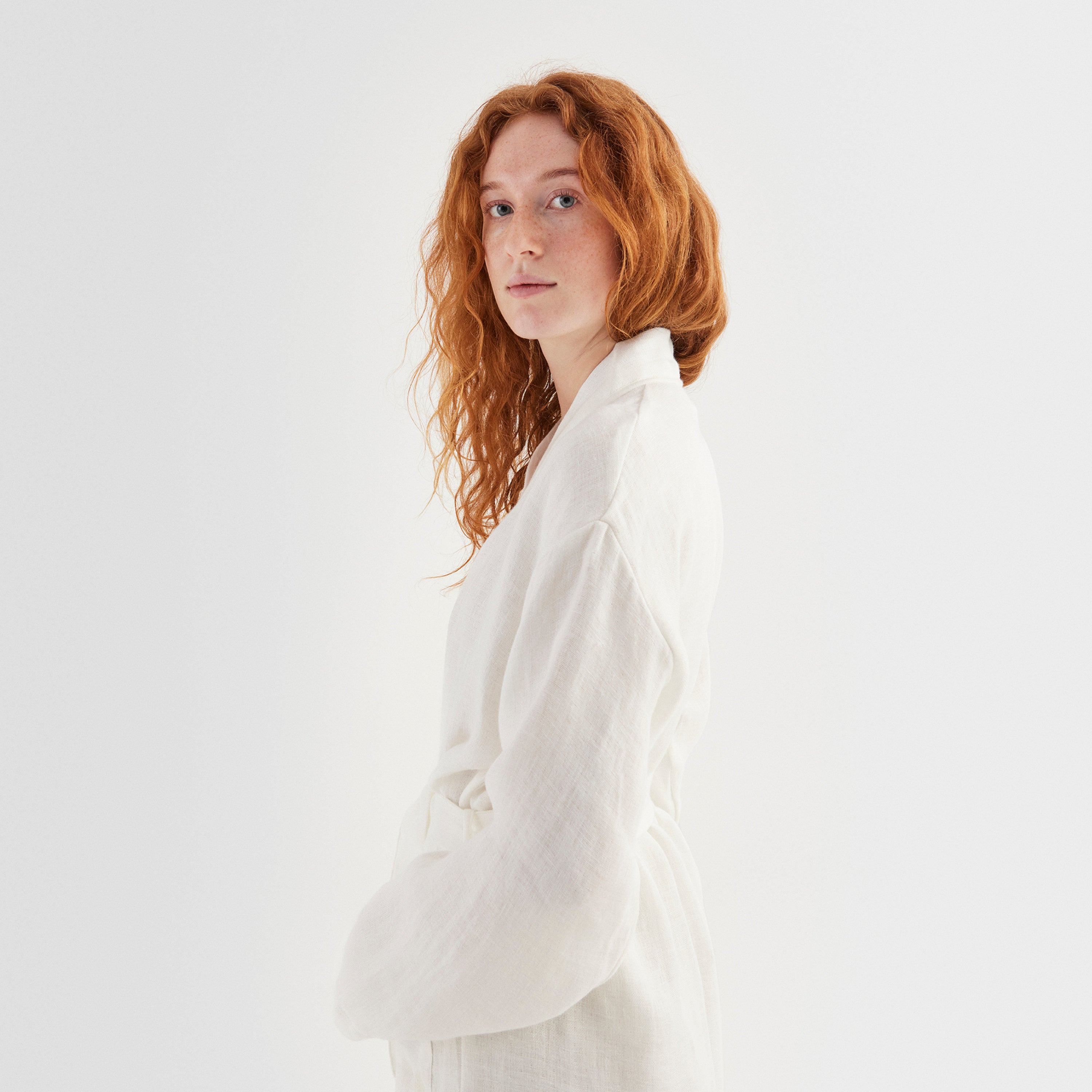 In white, the Linen kimono becomes a very simple classic, with an exceptionally light and luxurious look that works for all seasons.