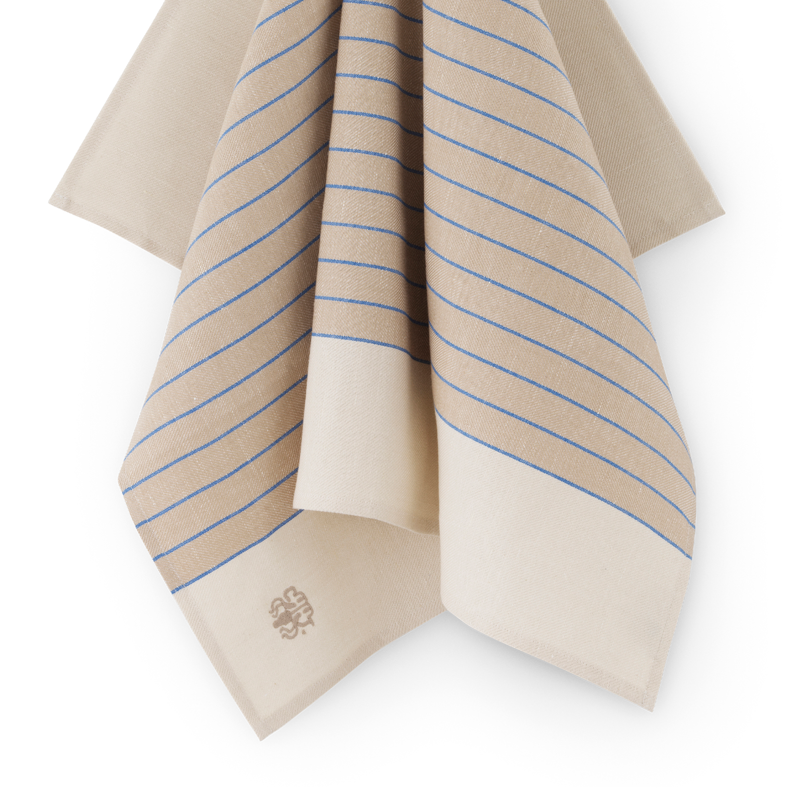 The Minimal Lines tea towels in brown and beige tones feature slim blue stripes and Georg Jensen Damask’s iconic embroidered logo as an elegant detail. The tea towel is woven from a blend of 50% linen and 50% cotton, providing softness, durability and excellent drying performance.