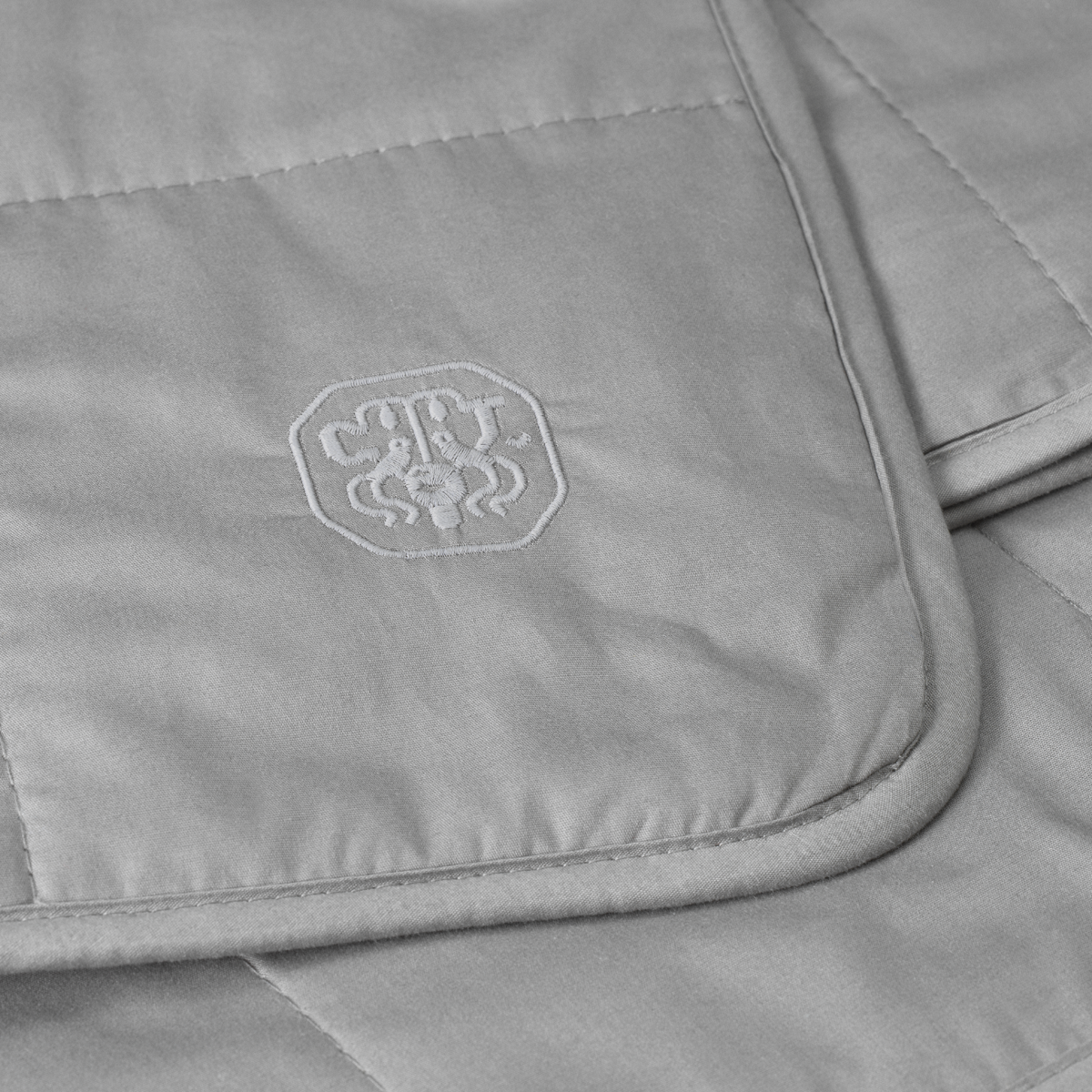The Mulberry Silk Quilt is an exclusive quilted blanket with a simple design. It is made from 100% cotton percale and filled with temperature-regulating mulberry silk, known as the finest quality silk. Cool in the summer and warm in the winter. The grey hue, Serene Grey, is both elegant and timeless.