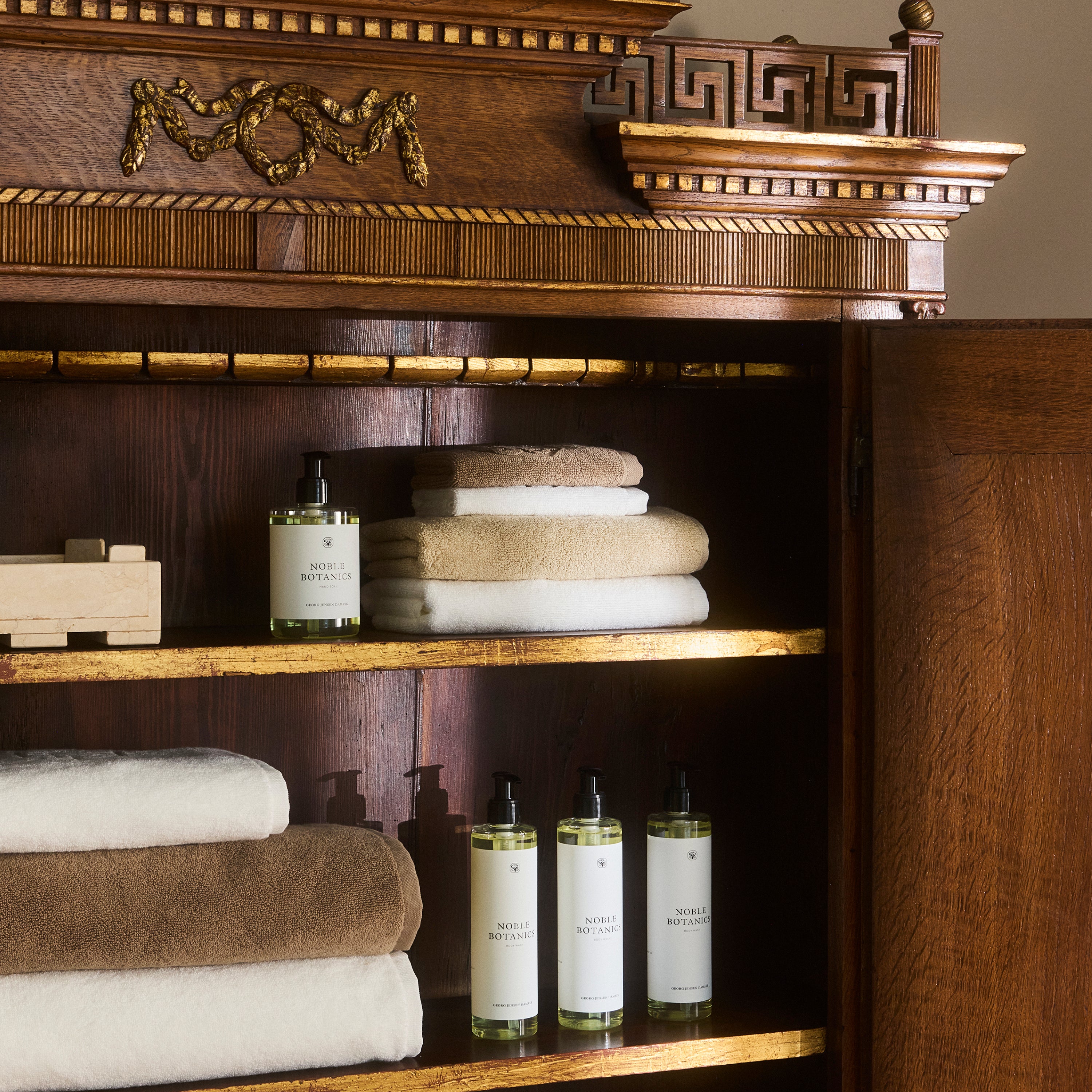 Noble Botanics Body Lotion is enriched with cotton extract, celebrated for centuries for its moisturizing properties. Notes of rosemary, geranium, and patchouli add a subtle fragrance to the cream.