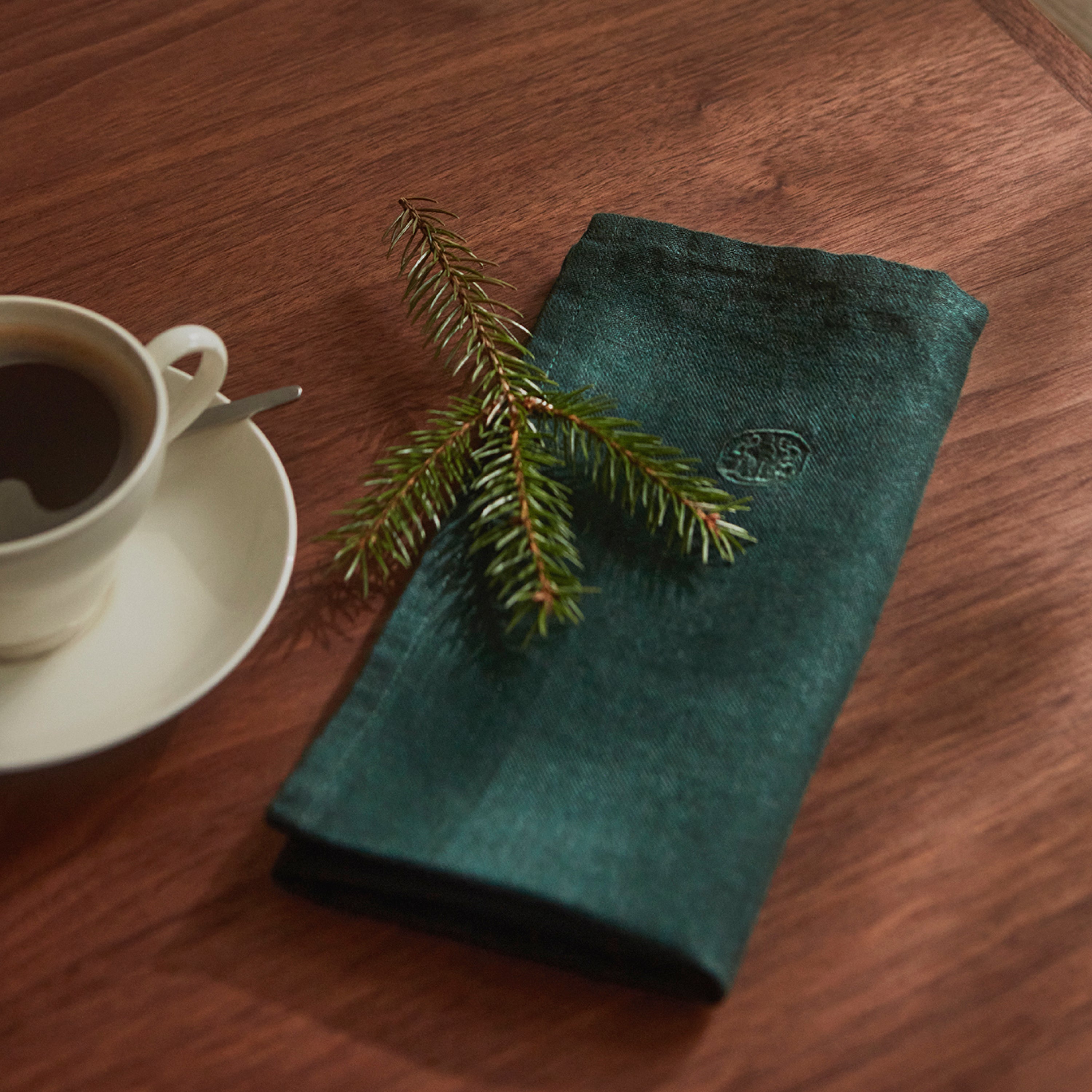 The simple design and deep dark green colour make the linen napkin with the embroidered logo a beautiful addition to the table. The green colour creates a special Yuletide ambience – just like in the old days.