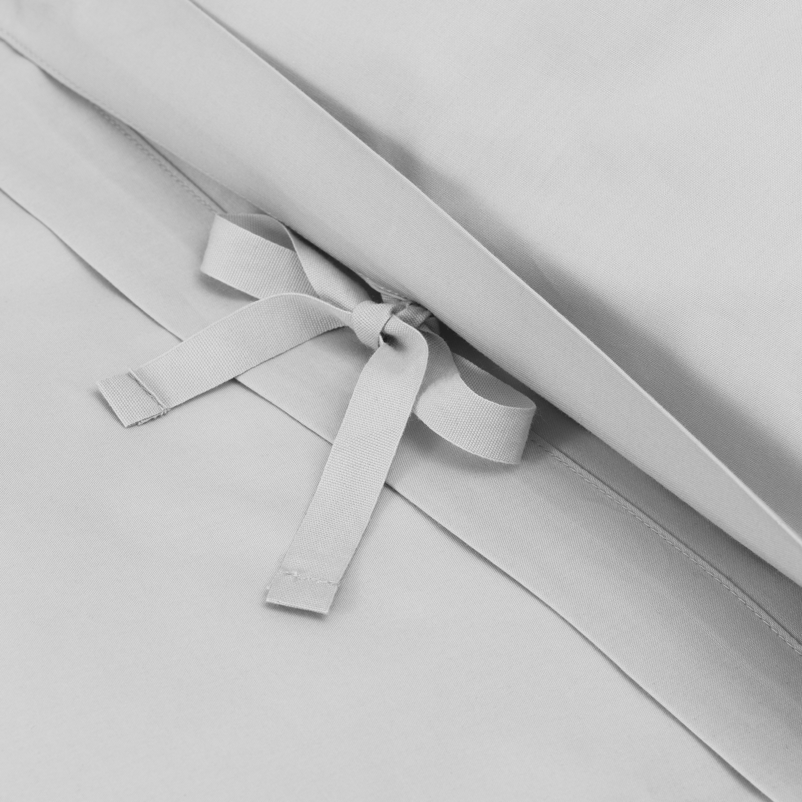 The duvet cover fastens with ribbon ties, while the pillowcases have an envelope closure. The bed linen set features Georg Jensen Damask's iconic logo discreetly embroidered into the fabric. Platinum grey is a pale, calming shade of grey.