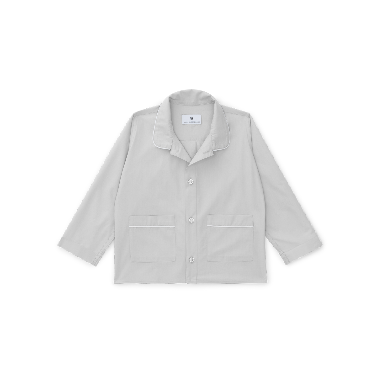 Unisex children's pyjamas percale woven in Supima cotton. Platinium Grey is a light and calm shade of grey.