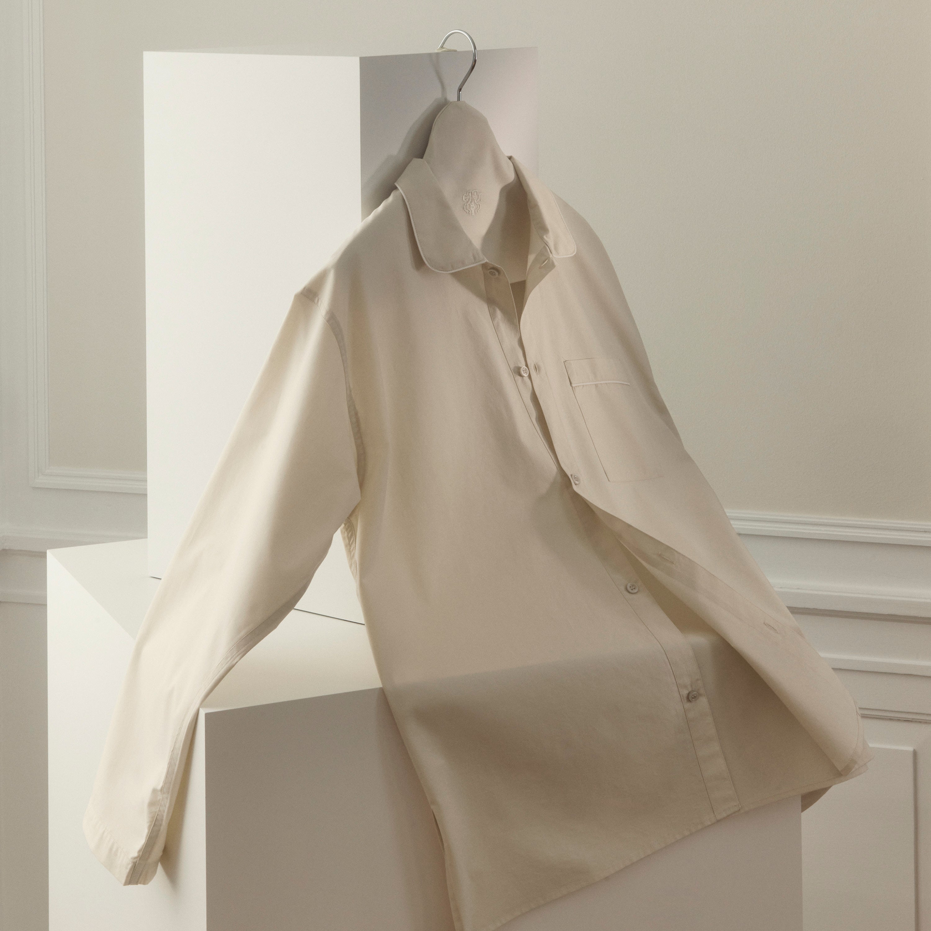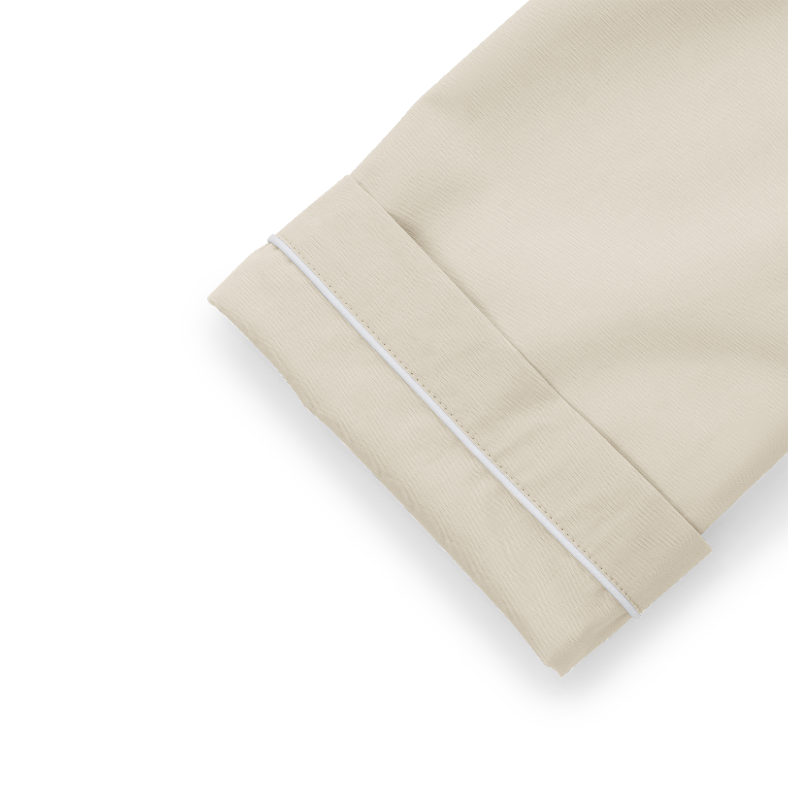Unisex pyjamas percale-woven in Supima cotton. The pyjamas have a classic cut and elegant white pipings. Archive Linen is a light beige color inspired by linen from our centuries-old archive.