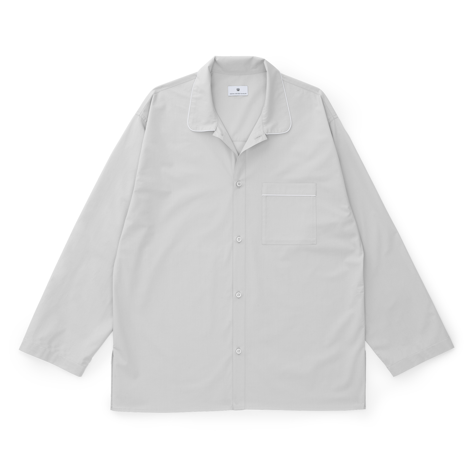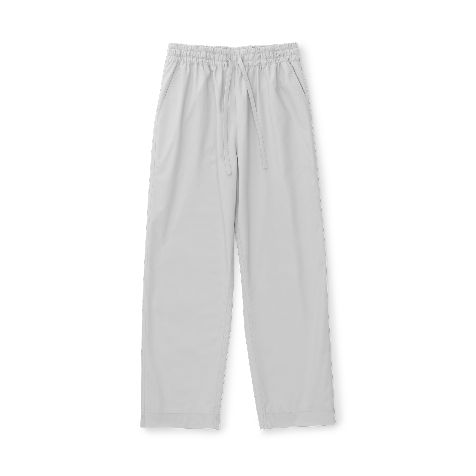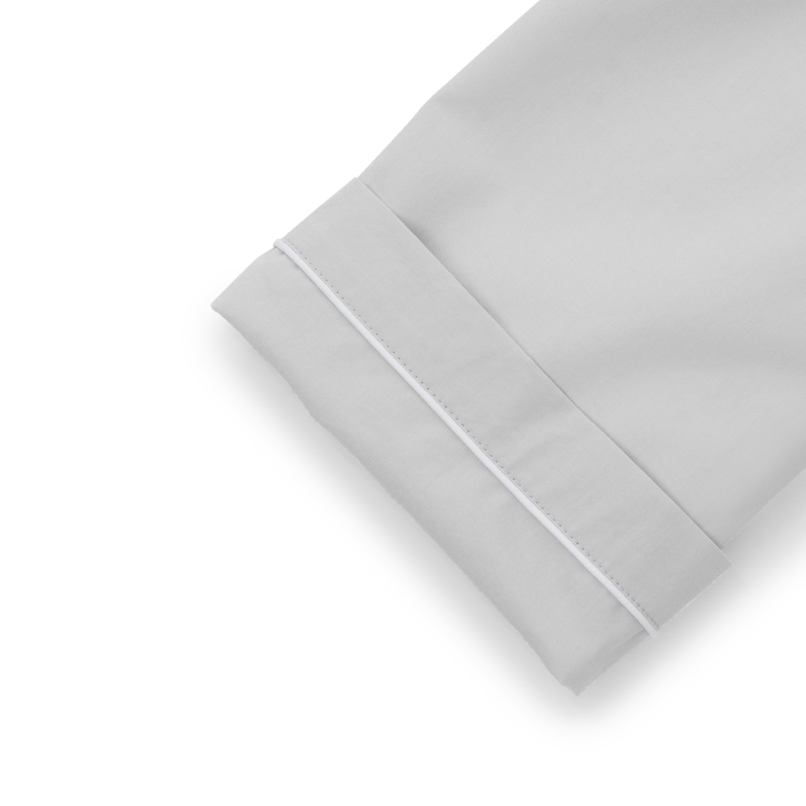 Unisex pyjamas percale-woven in Supima cotton. The pyjamas have a classic cut and elegant white pipings. Platinium Grey is a light and calm shade of grey.