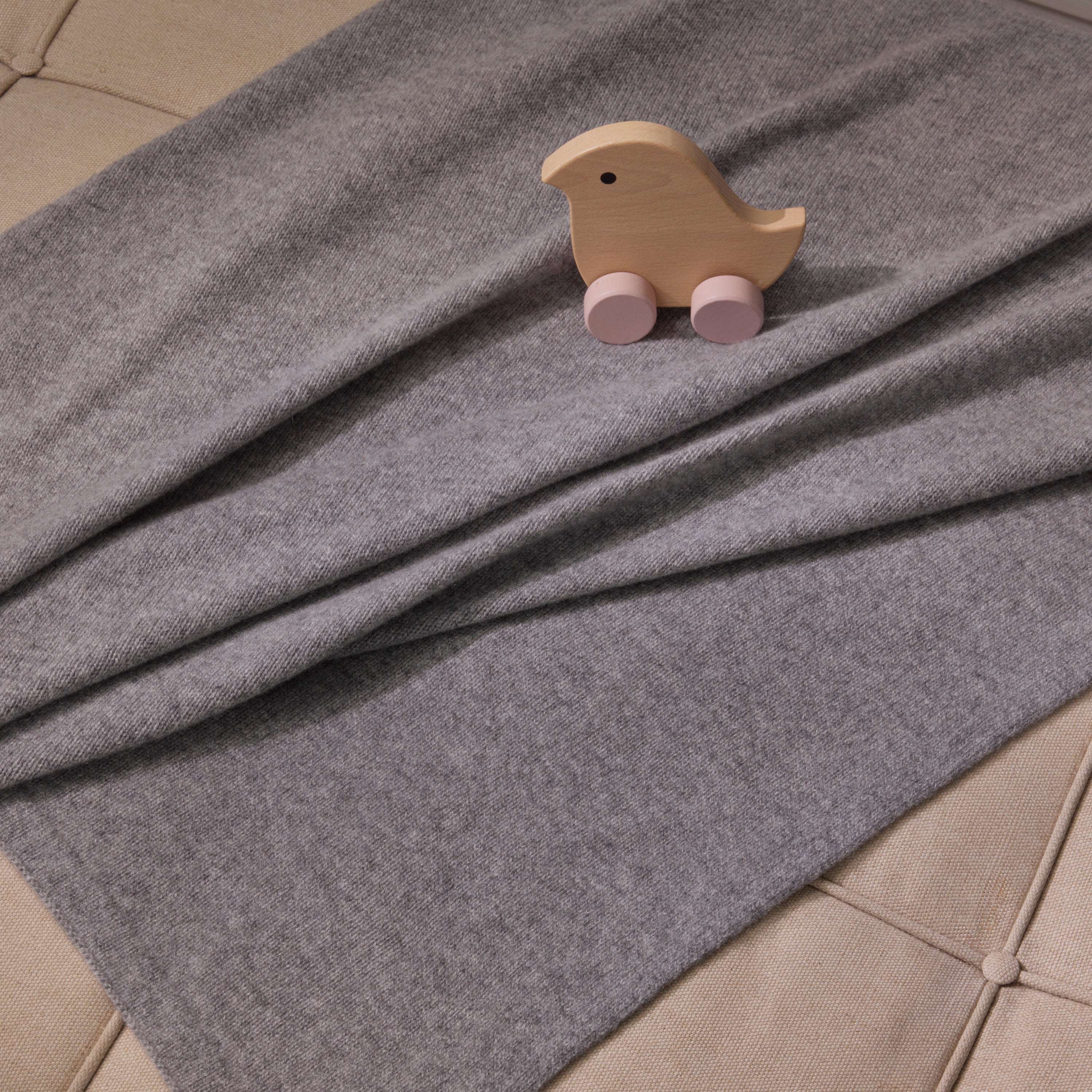 Exclusive knitted scarf – which can also be used as a baby blanket – made of 100% cashmere. The fine, long cashmere fibres provide exceptional softness and insulating properties. The scarf features elegant ribbed edges along the sides and a knitted fold-over edge at the top and bottom. The smooth knit in double‑twisted yarns creates an even surface and a comfortable suppleness.