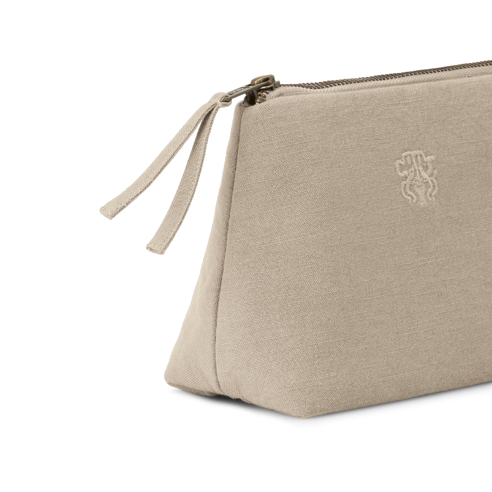 Functional and spacious cosmetic pouch in a timeless design. The All cosmetic pouch is woven in 100% cotton with an inner pocket and features the Georg Jensen Damask logo embroidered as an elegant detail. The colour Cashmere is a subtle, brownish-grey shade with a calm and luxurious expression – inspired by the natural colour of cashmere wool.