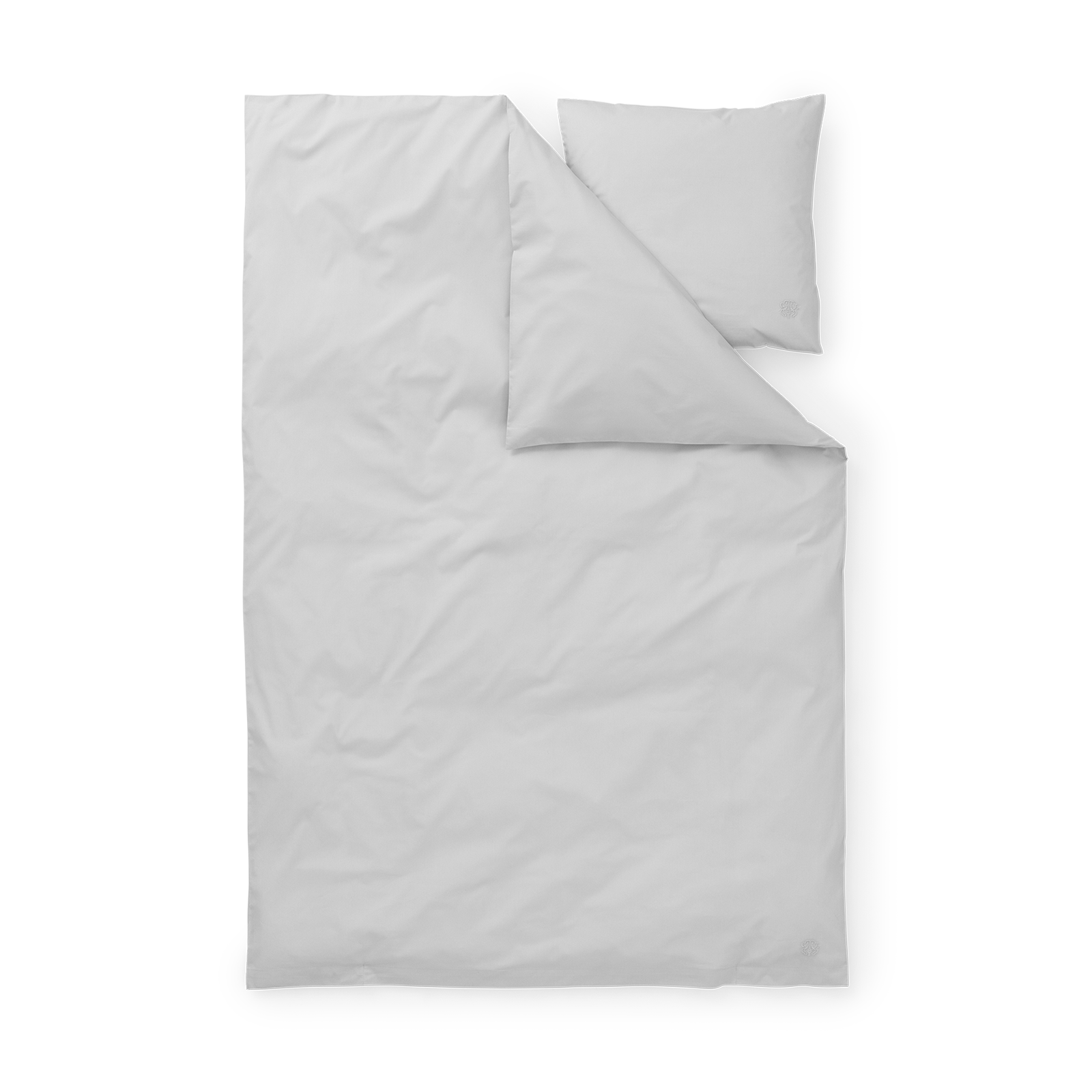 The duvet cover has a ribbon tie fastening, while the pillowcase has an envelope closure. The bed linen set features Georg Jensen Damask's iconic logo discreetly embroidered into the fabric. Platinum grey is a pale, calming shade of grey.