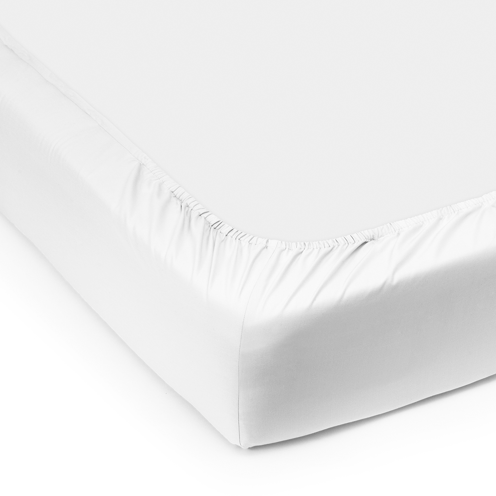 The box-fitted sheet has elasticated corners. The sheet features Georg Jensen Damask's iconic logo discreetly embroidered into the fabric. The colour White is a pure white.