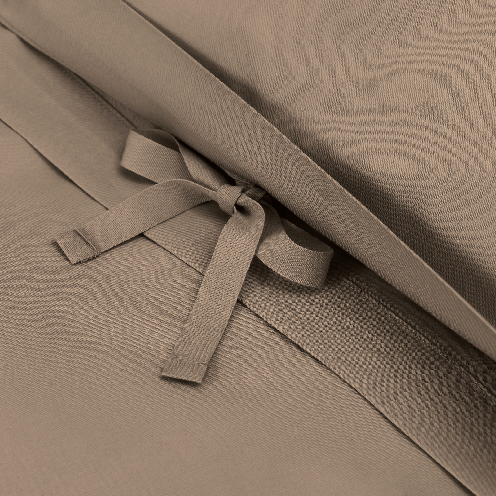 The duvet cover fastens with ribbon ties, while the pillowcases have an envelope closure. The bed linen set features Georg Jensen Damask's iconic logo discreetly embroidered into the fabric. Walnut is a deep, nut-brown colour.