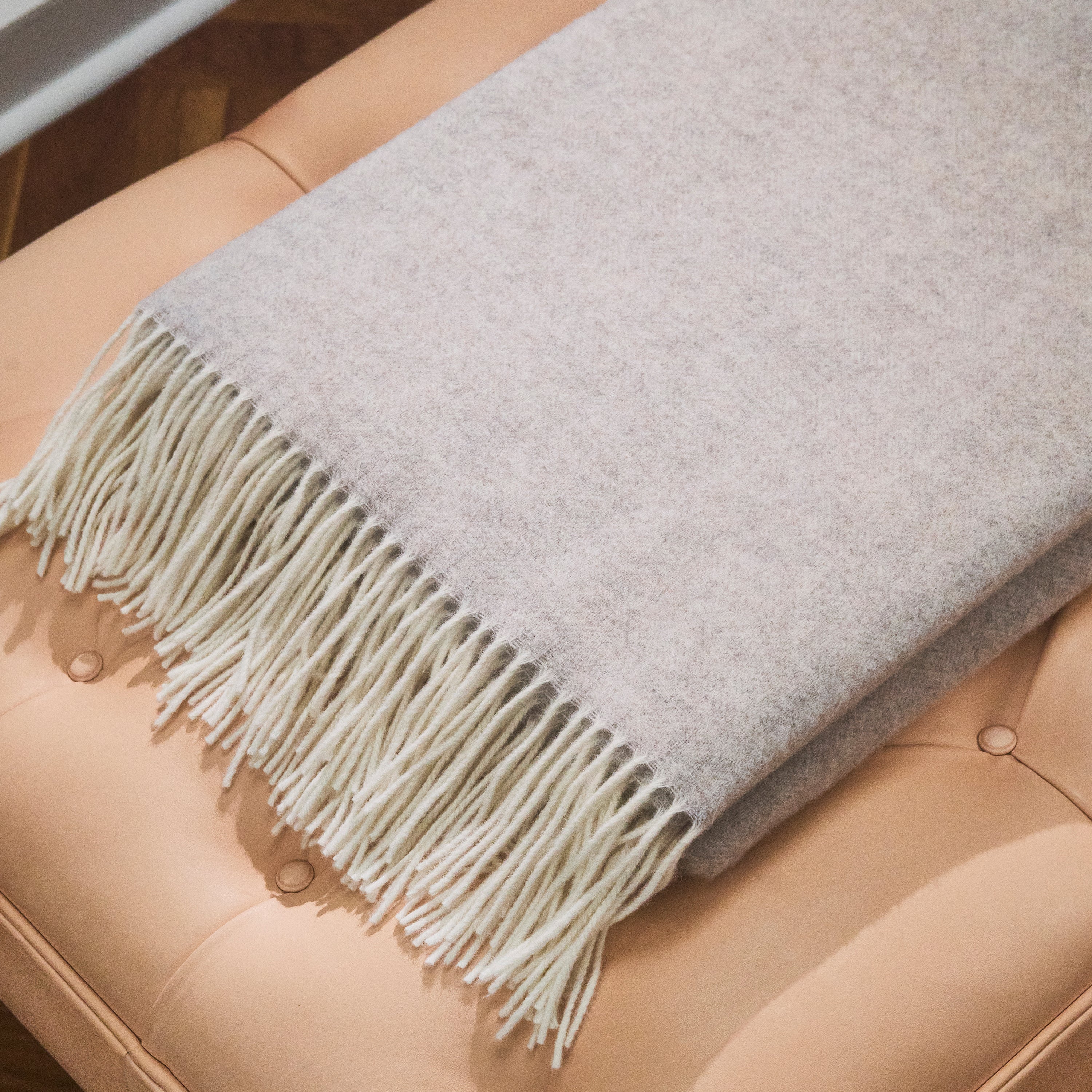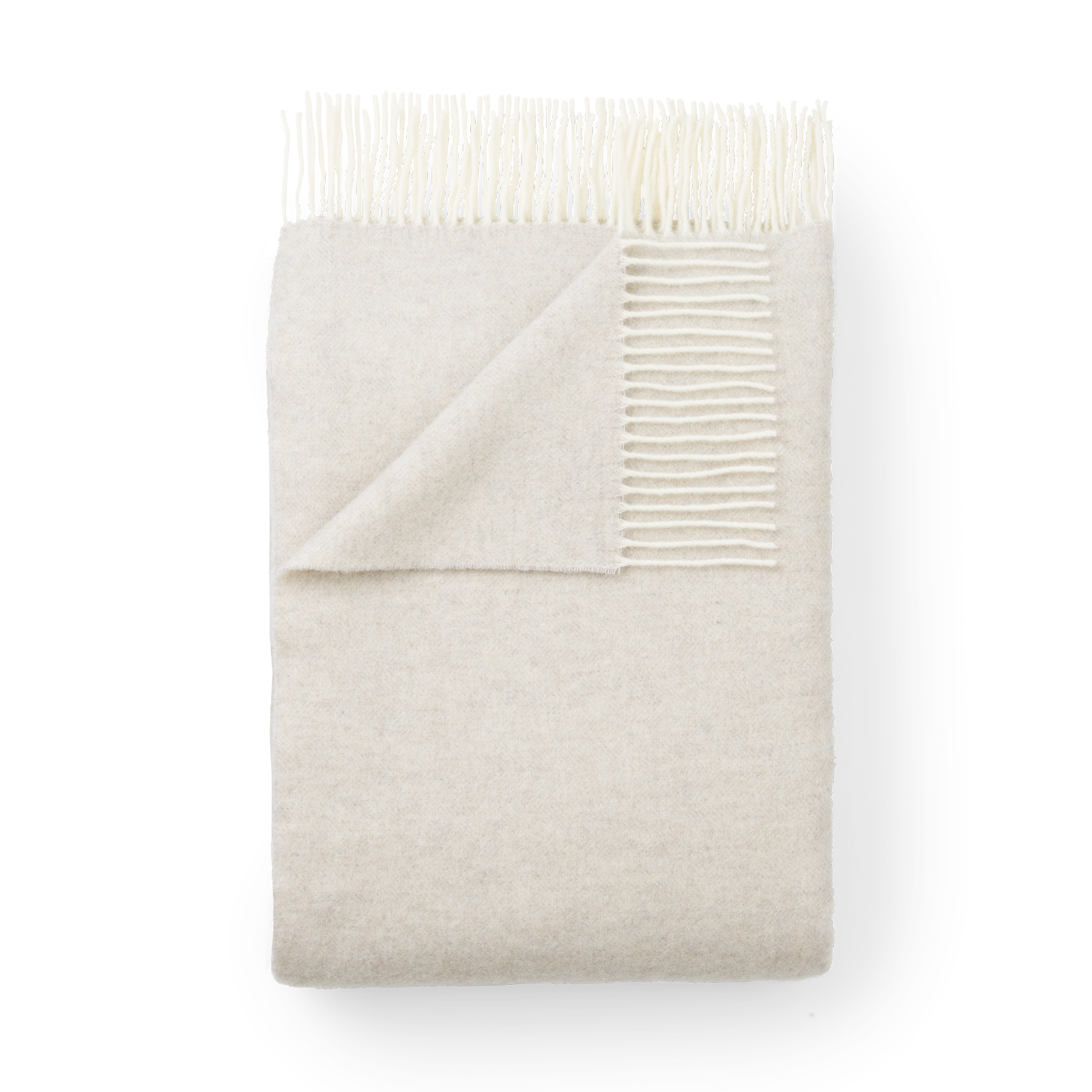 Elegant throw made of merino wool and cashmere. The Drift throw in the colour Soft Sand is woven in a refined herringbone pattern from yarns in sandy shades, giving it a beautiful and natural look. The Drift throw is made from 90% merino wool and 10% cashmere, which helps it retain warmth and makes it perfect for cosy comfort.