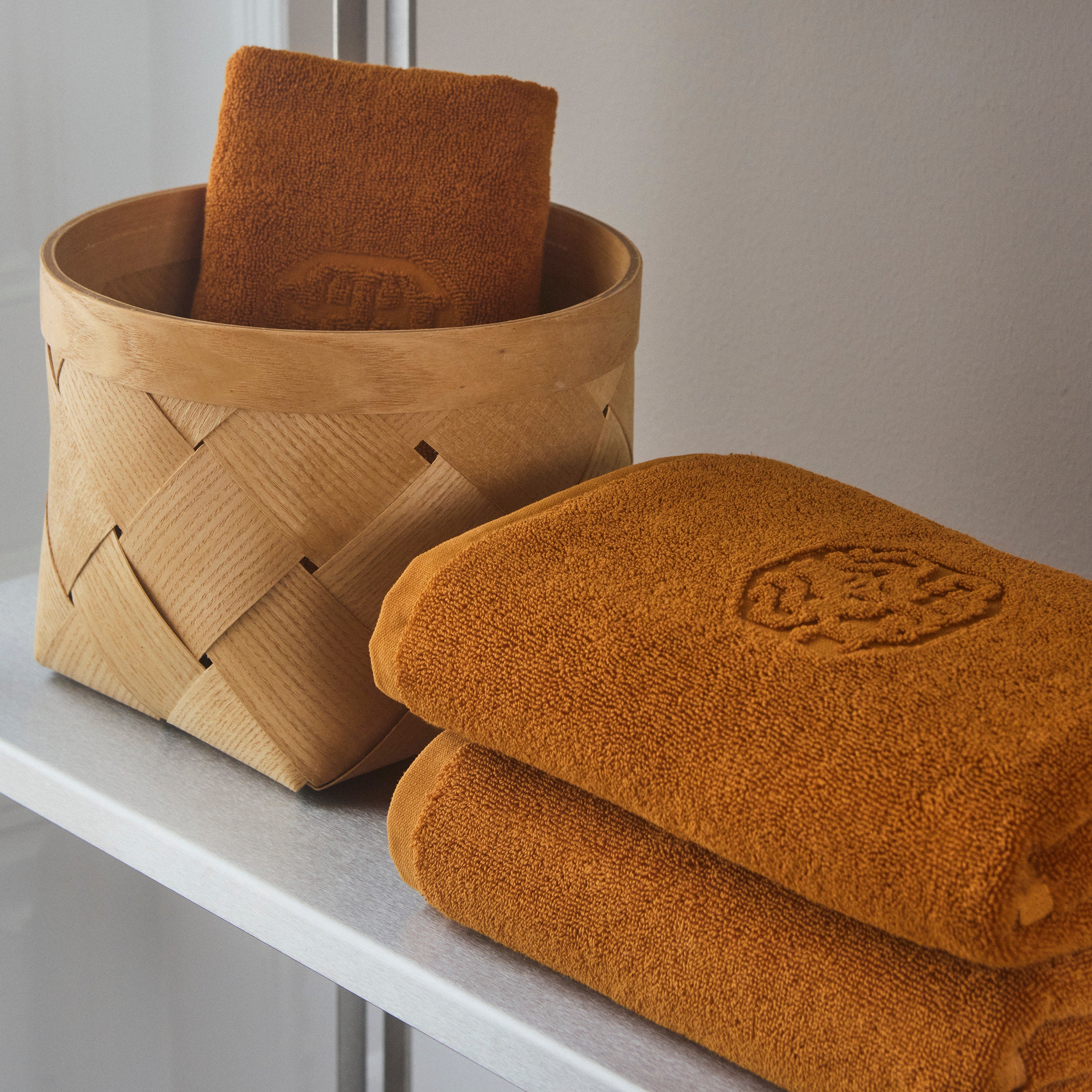 The Damask Terry towel features a simple design with Georg Jensen Damask’s iconic logo woven in as an elegant detail. Chanterelle is a deep orange with caramel undertones. The colour is inspired by the beautiful shades of the chanterelle mushroom.
