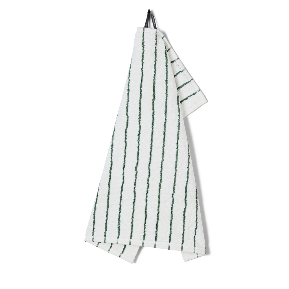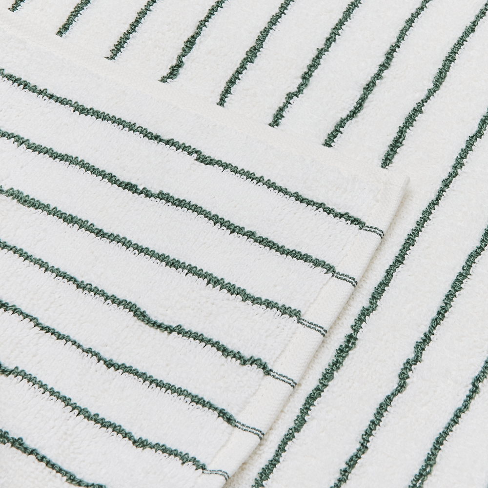 The mineral green stripes give the facecloth a contemporary and classic look.